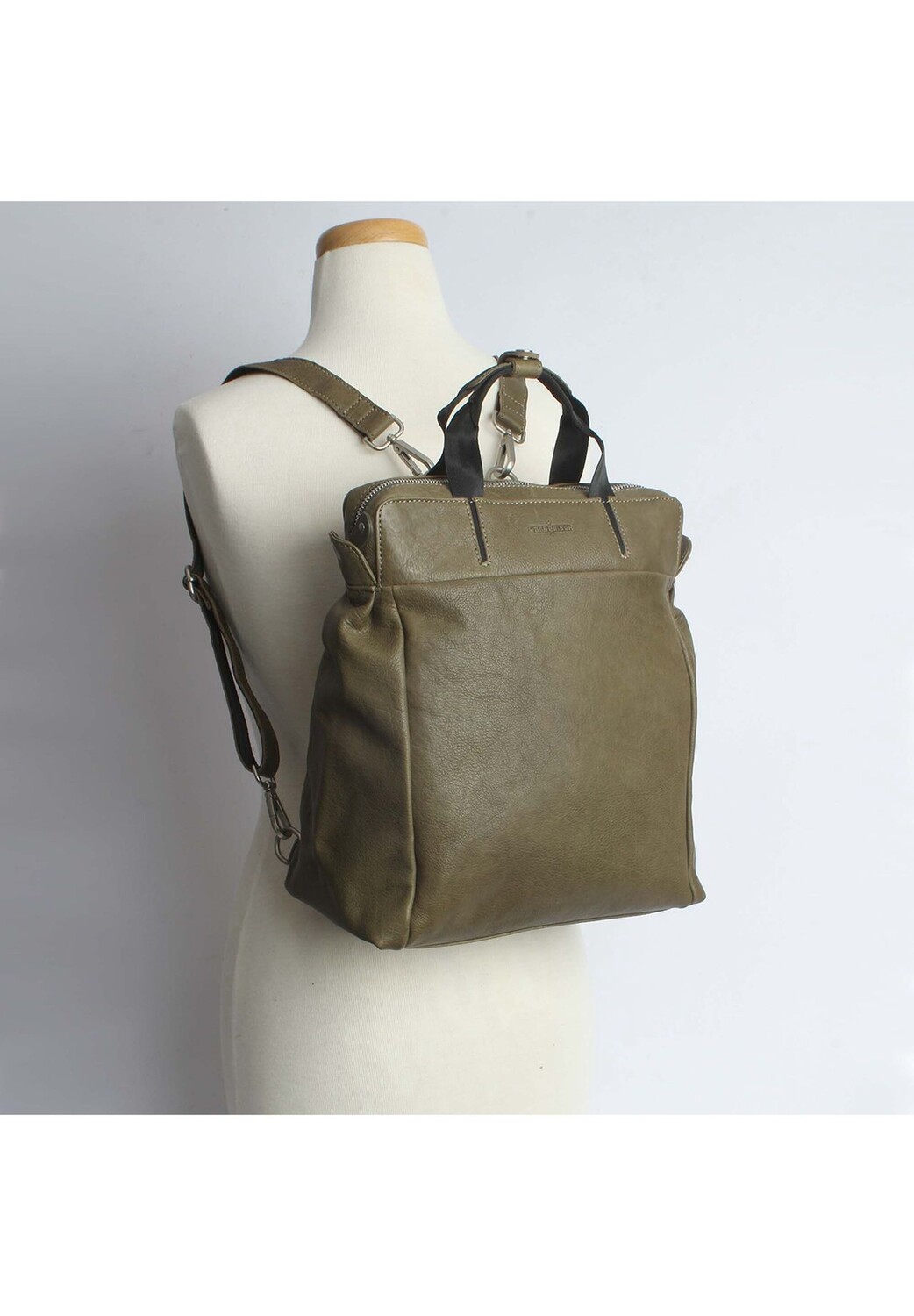 Особенности Кожа Хлопок из кожи, сертифицированной LWG Производство amfori сертифицировано BSCI Сертифицировано LWG кожа Внешнее отделение на молнии Сумка-рюкзак В/Ш/Г 33 см x 28 см x 13 см Цвет: зеленый