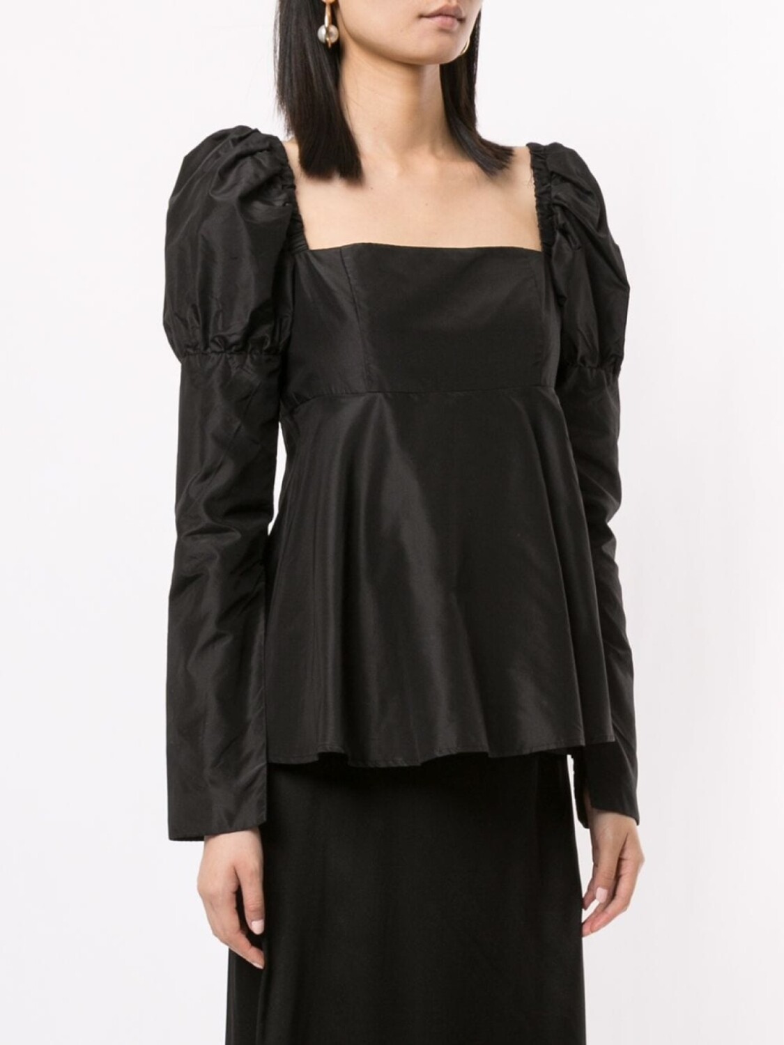 Блузка Romantic от McGraw (МакГроу). Квадратный вырез, длинные рукава, расклешенный силуэт и прямой подол. Цвет: черный.