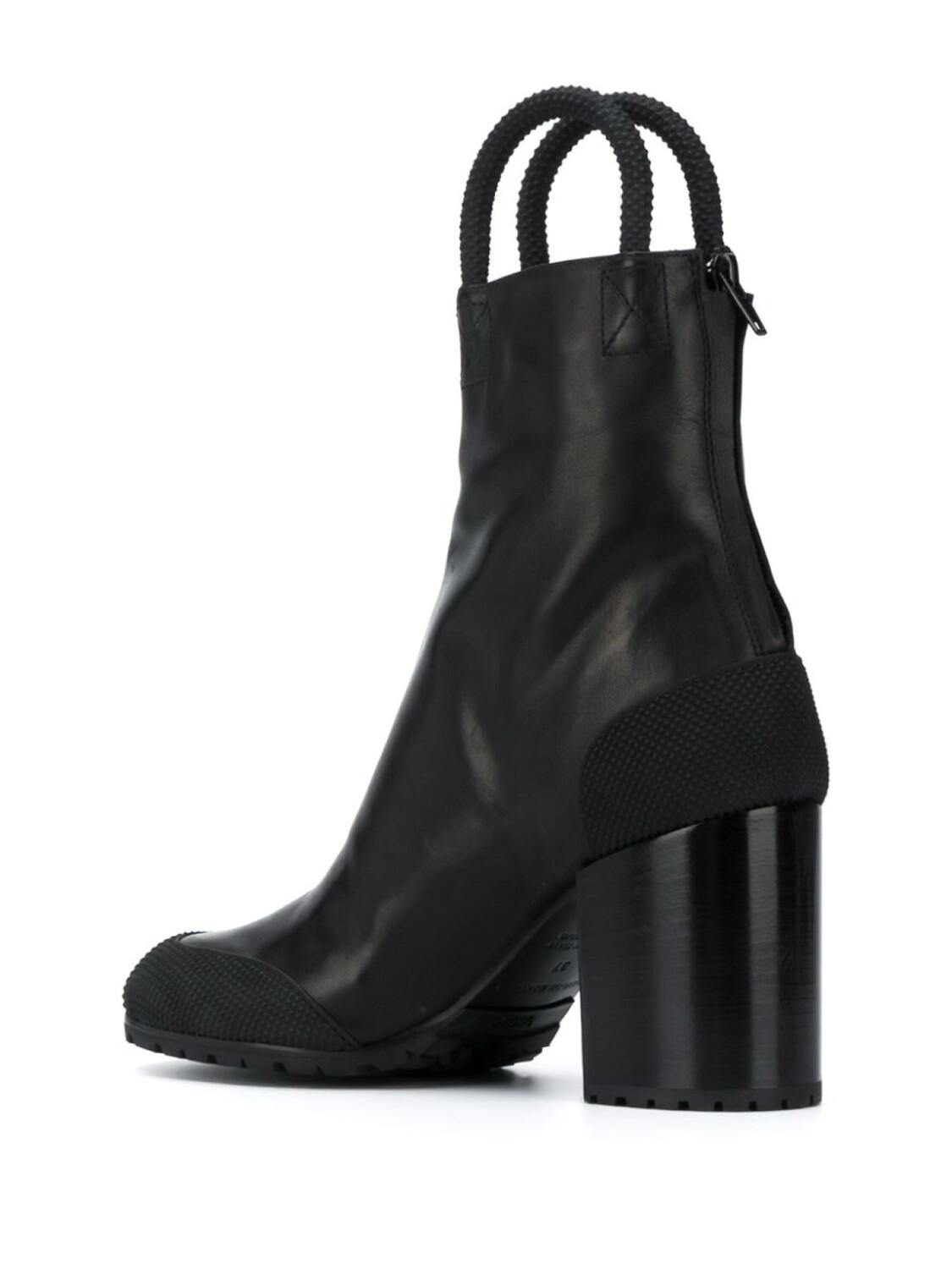 Тональная строчка, круглые ручки, закругленный носок, застежка на молнии сбоку и высокий наборный каблук. Цвет: черный.
