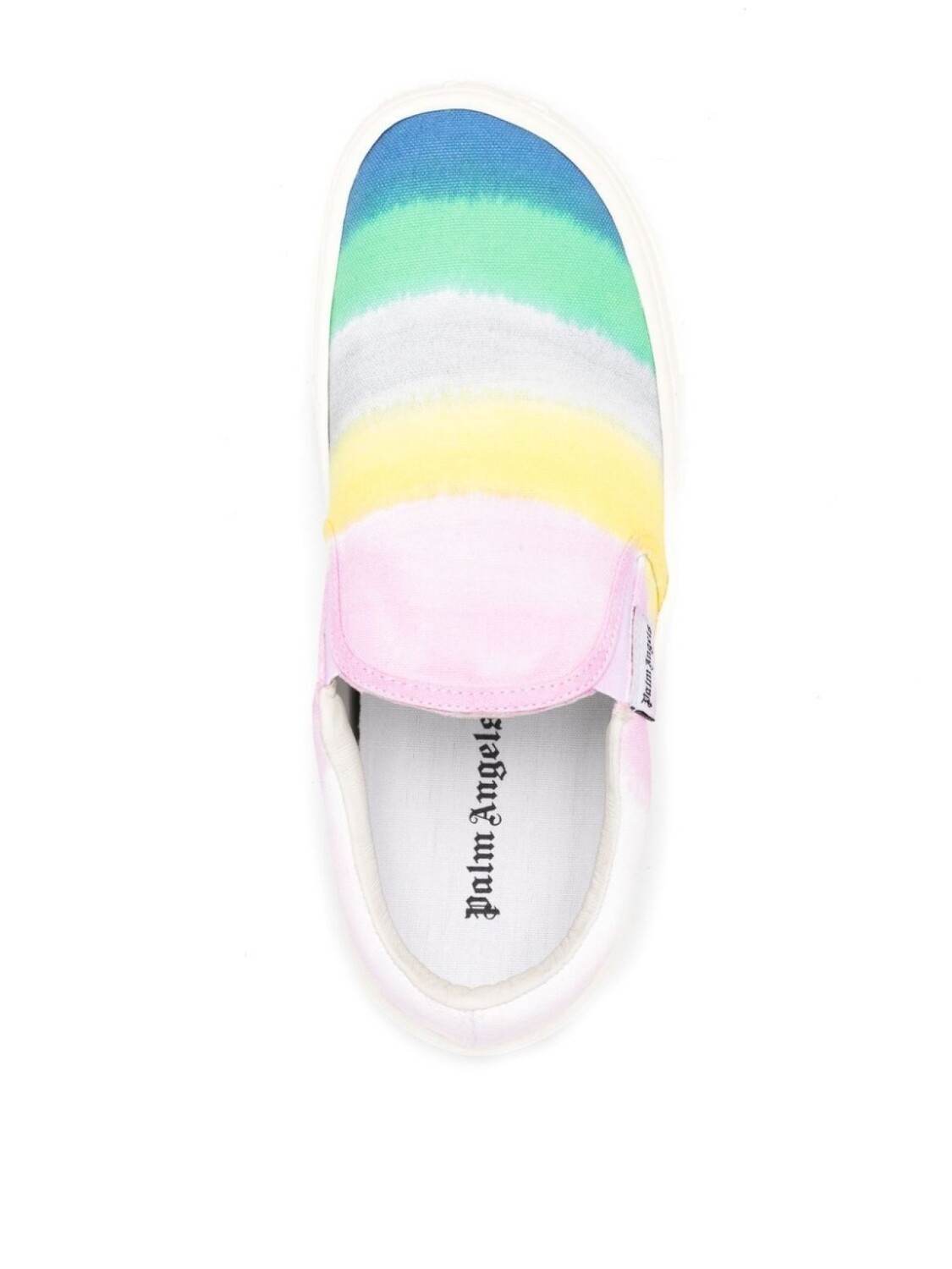 Белый/разноцветный, принт в полоску, подошва на платформе, закругленный носок, стелька с логотипом и модель без застежки.