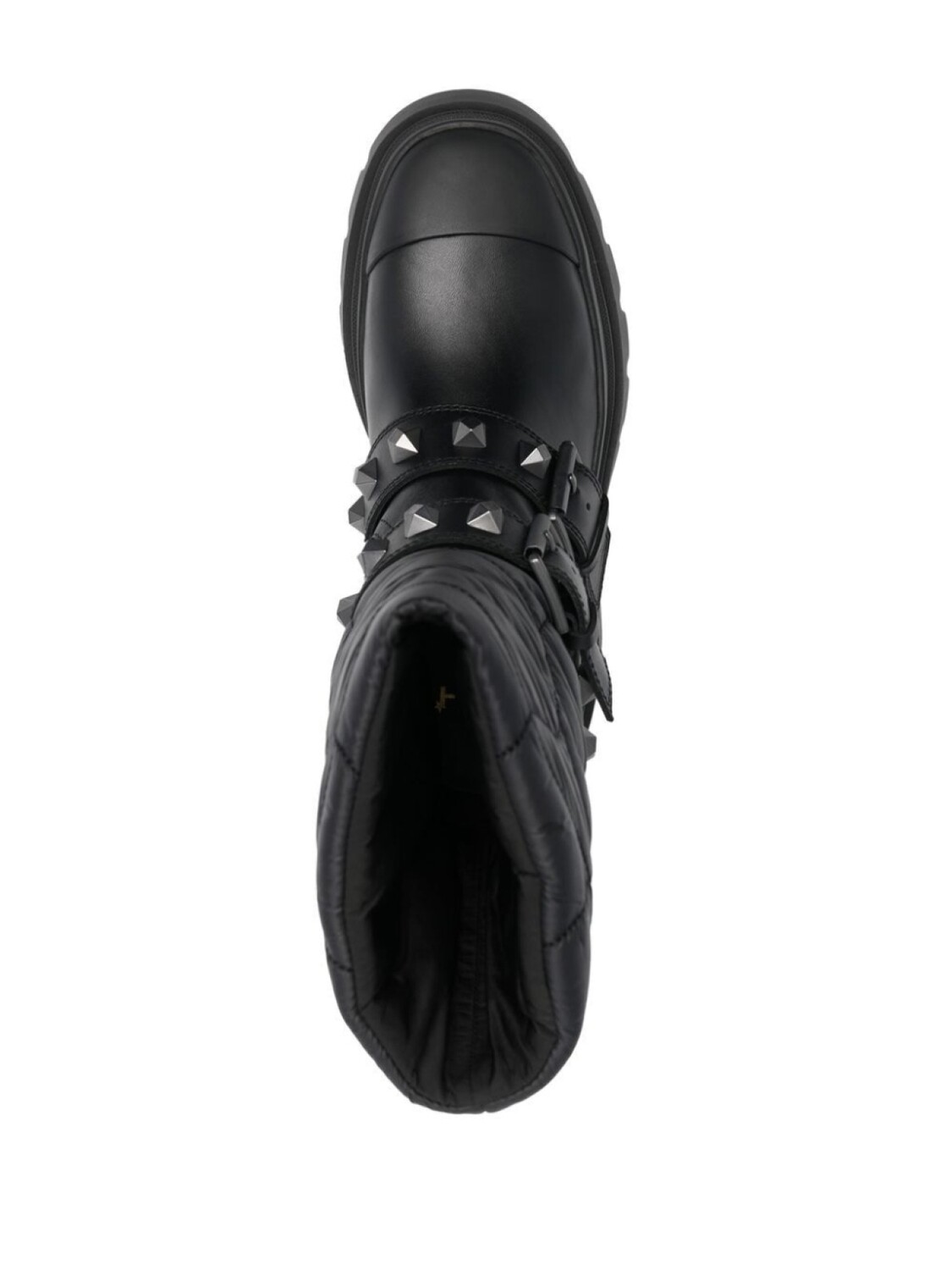 Черный, искусственная кожа, застежка на пряжке, серебристые заклепки, стеганые вставки, закругленный носок, массивная резиновая подошва и модель без застежки.