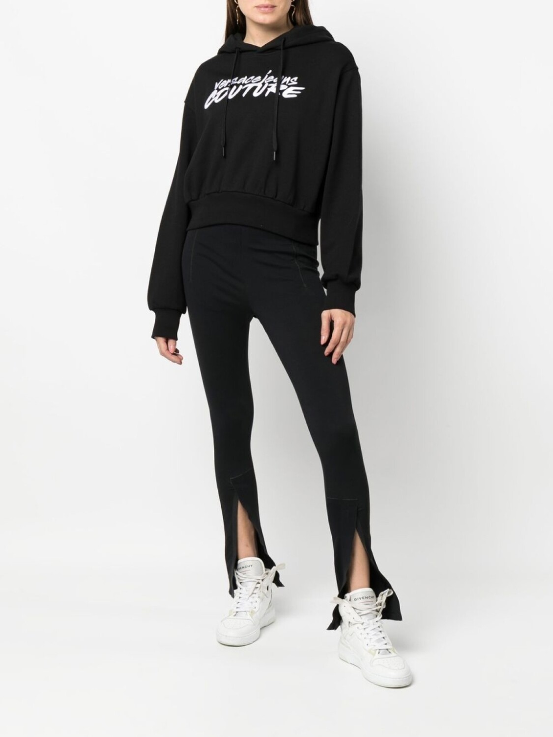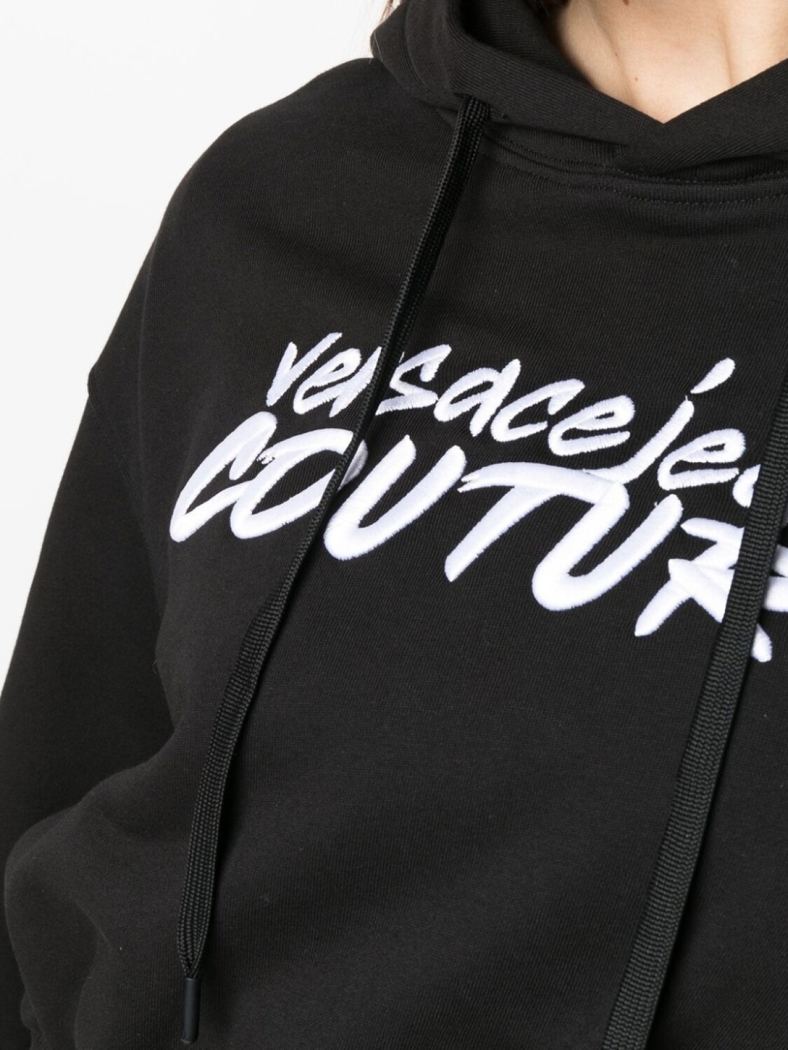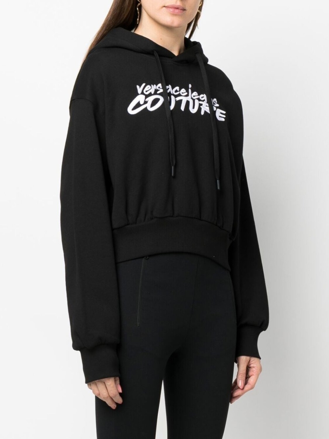 Versace Jeans Couture укороченное худи с вышитым логотипом, черный