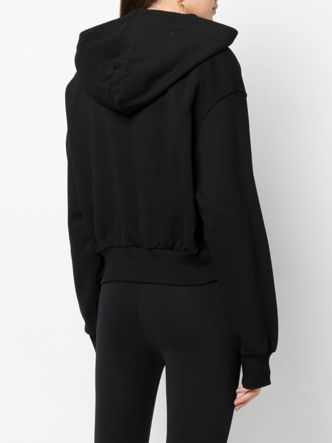 Черный/белый, хлопок, вышитый логотип на груди, затягивающийся на шнурок капюшон, длинные рукава, отделка в рубчик и укороченная длина.