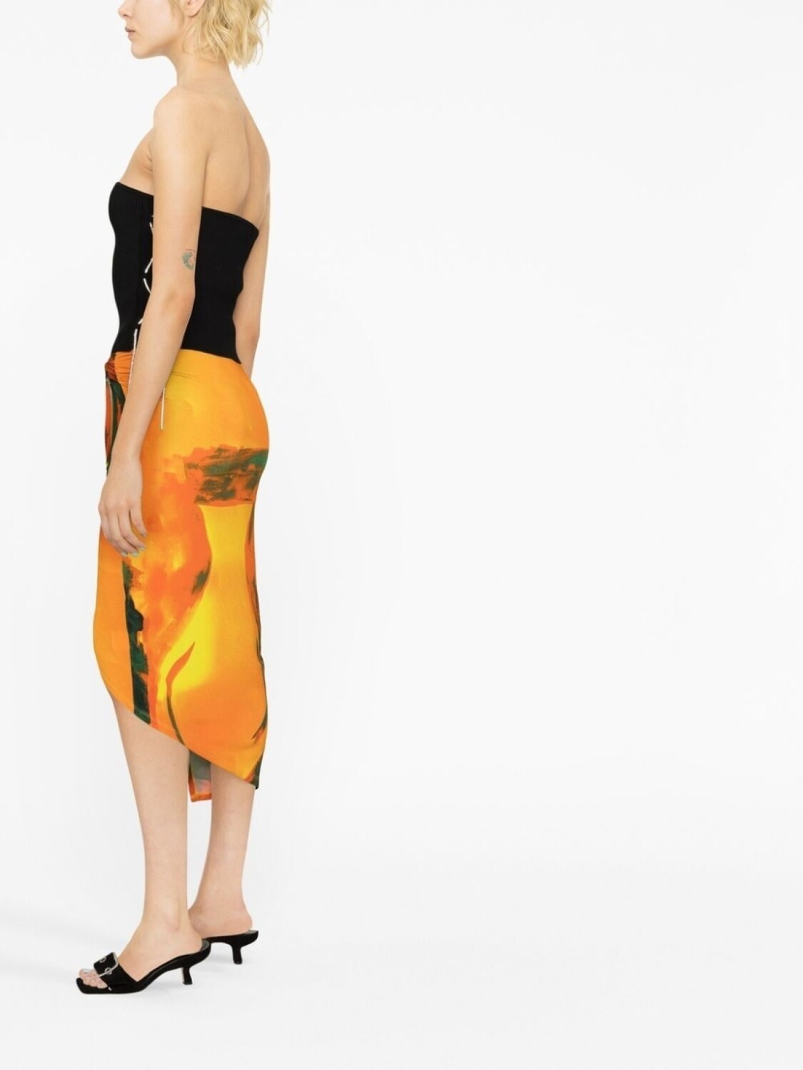 Черный, эластичный хлопок, декор из кристаллов, без бретелей и застежка с боковой кулиской.