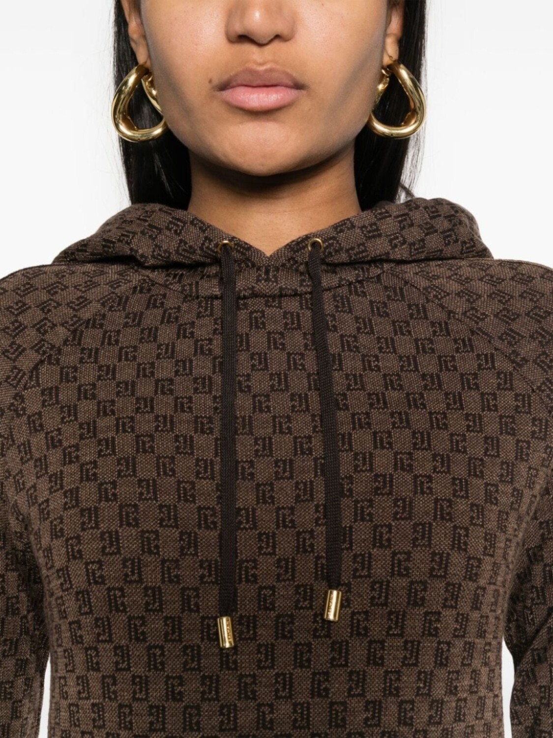 Кофейный, шерсть мериноса, принт с монограммой PB, контрастная отделка, затягивающийся на шнурок капюшон, длинные рукава реглан и прямой подол.