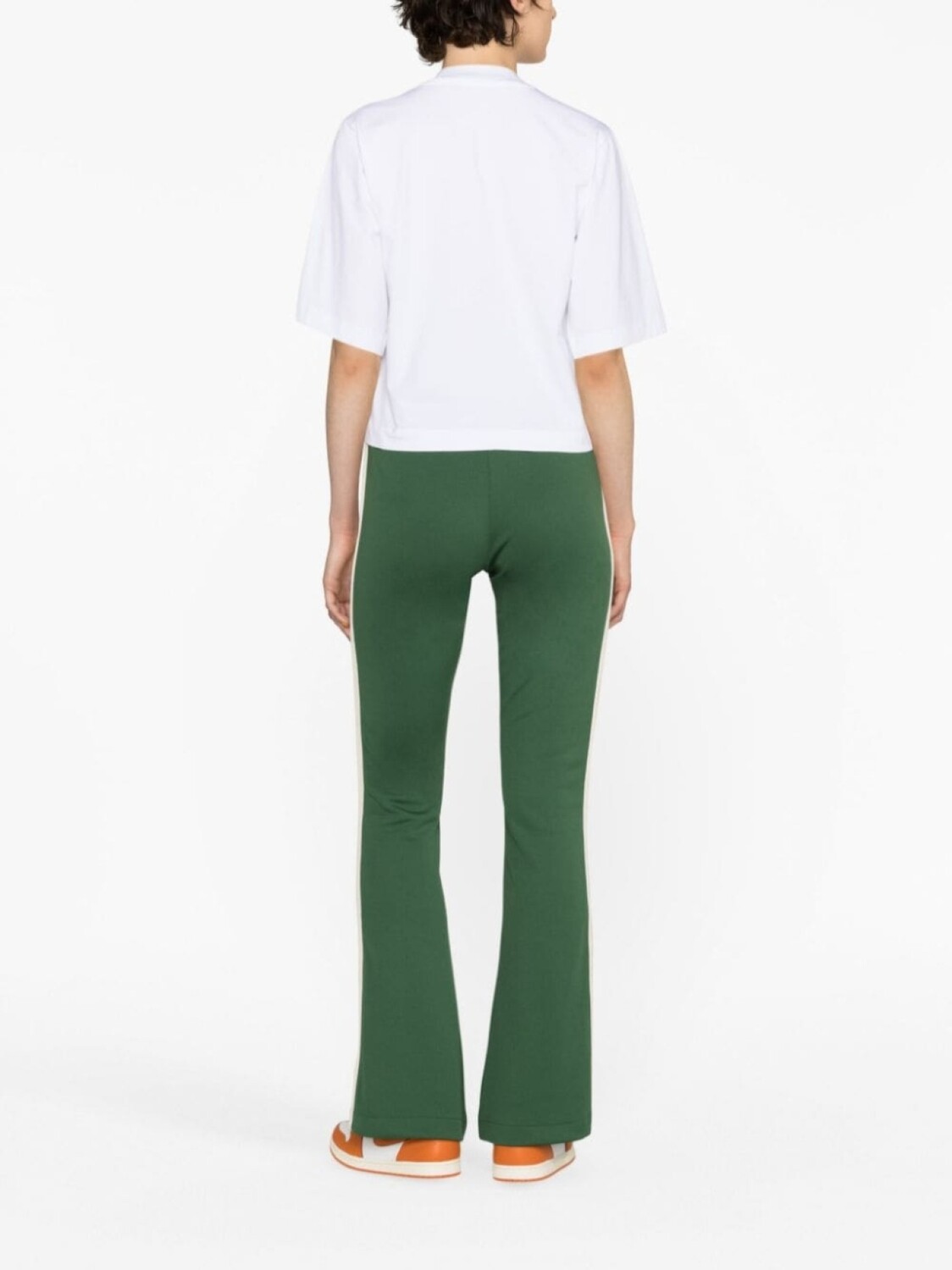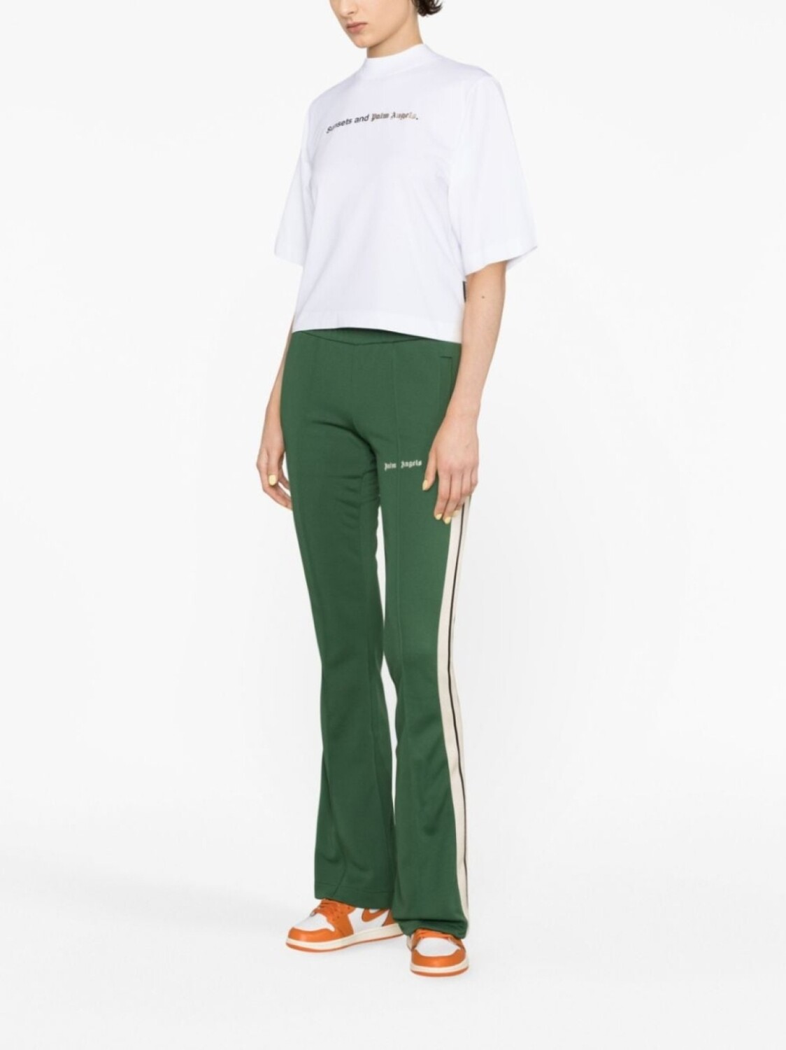 Белый, эластичный хлопок, принт с надписью спереди, высокий воротник, короткие рукава и прямой подол.