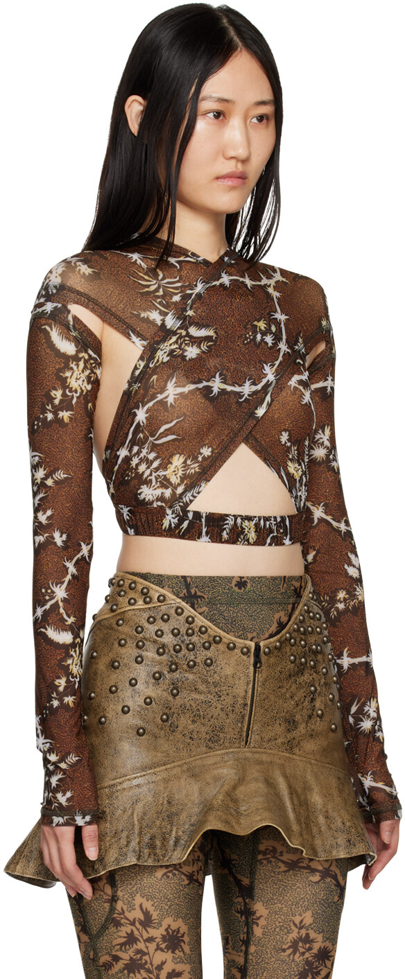 Полупрозрачная блуза из эластичного трикотажа из полиэстера. Графический принт по всей поверхности.