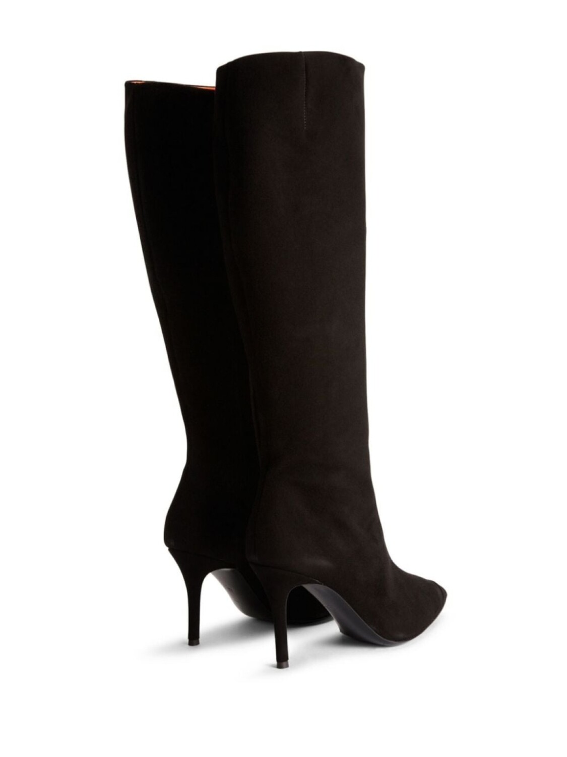 Черный, кожа, замша, заостренный носок, модель без застежки, кожаная стелька с логотипом, каблук на высокой шпильке и кожаная подошва.