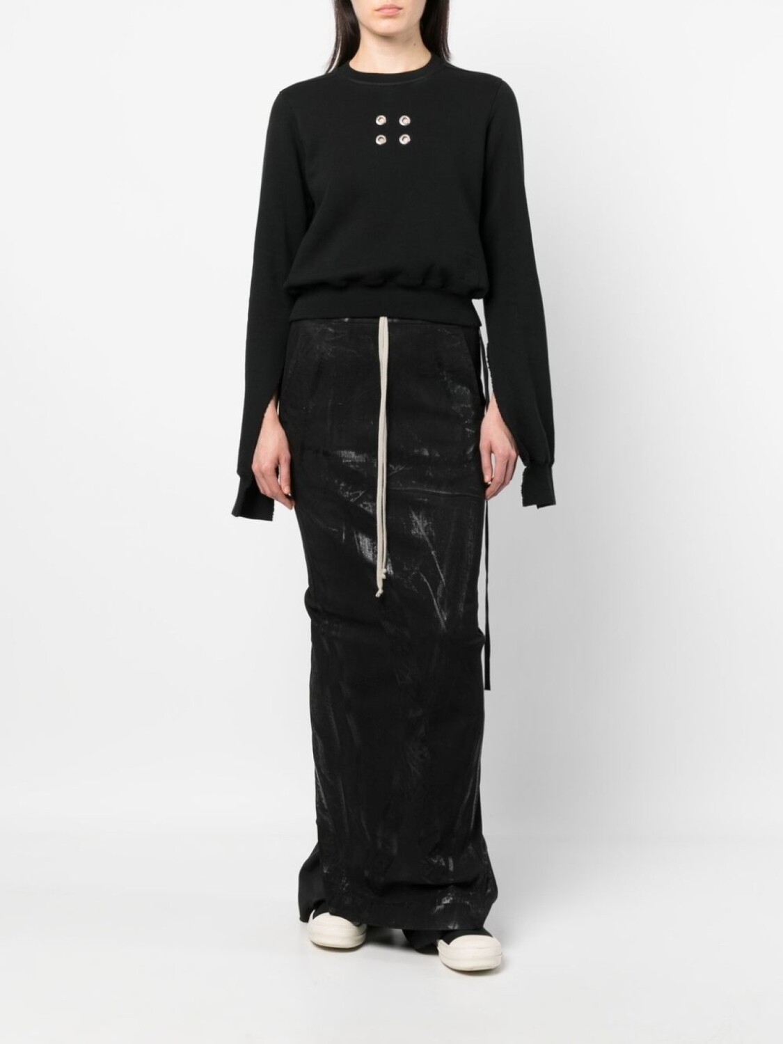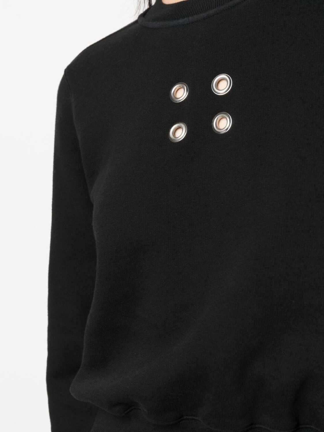 Черный, хлопок, отделка в рубчик, люверсы, круглый вырез, длинные рукава, проймы, прямой подол и укороченная длина.
