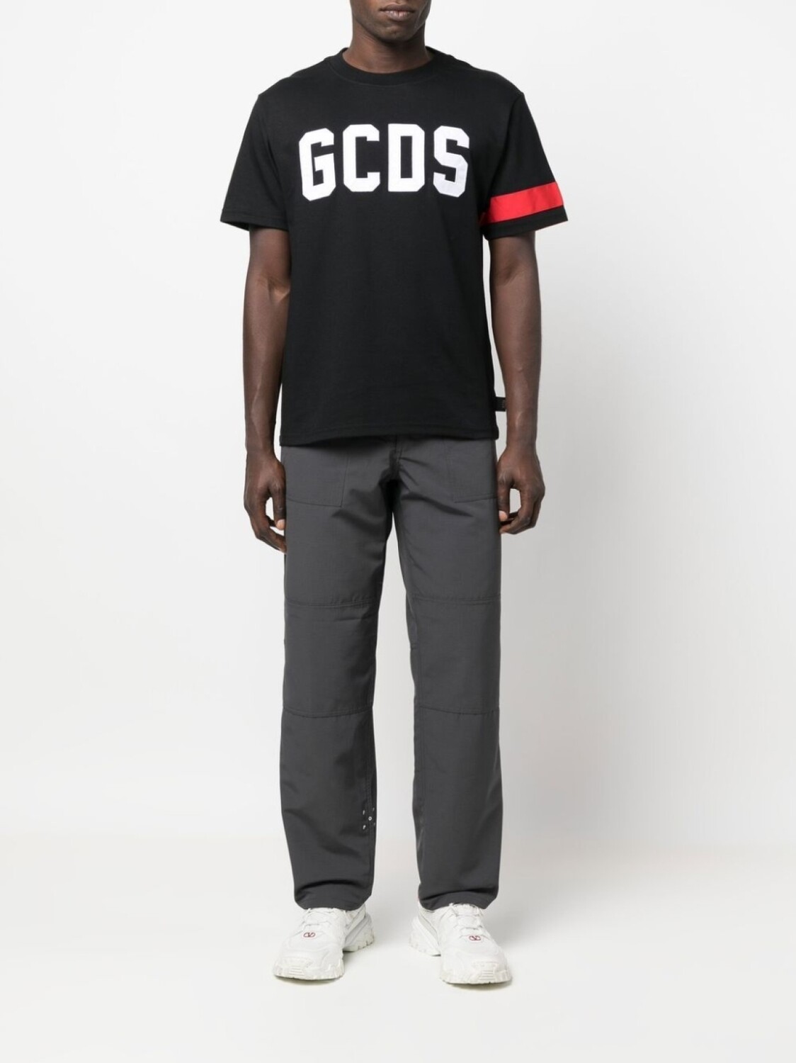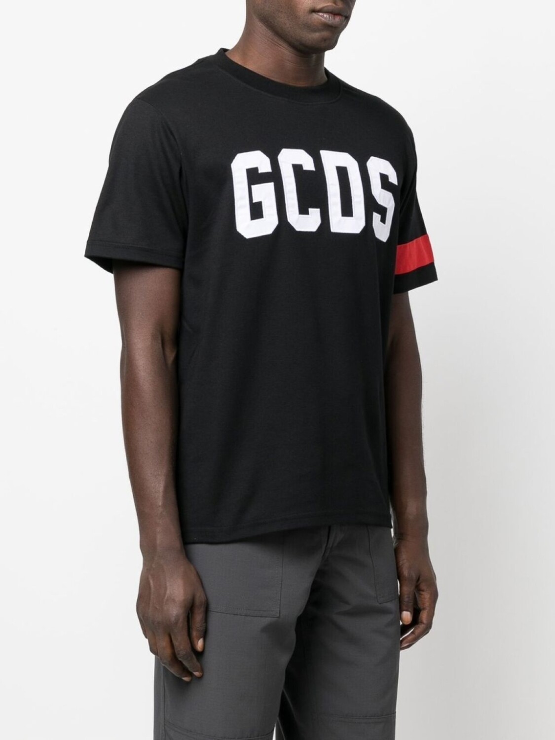 Черный/красный, хлопок, логотип спереди, отделка в полоску, круглый вырез, короткие рукава и прямой подол.