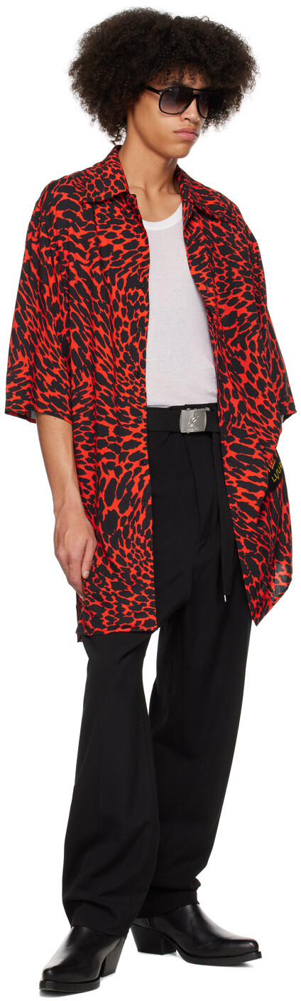 Красно-черная рубашка с психоделическим леопардовым принтом LU'U DAN