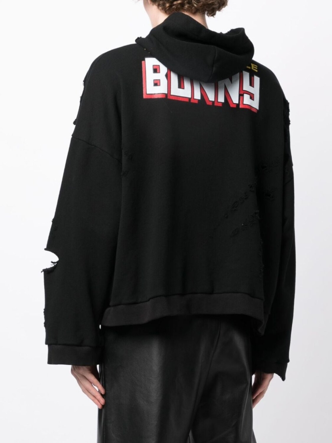 Черный/разноцветный, хлопок, мультипликационный принт, эффект потертости, классический капюшон, приспущенные плечи, длинные рукава и прямой подол. Это унисекс-модель. Обратите внимание, что для нее используется мужская размерная сетка.