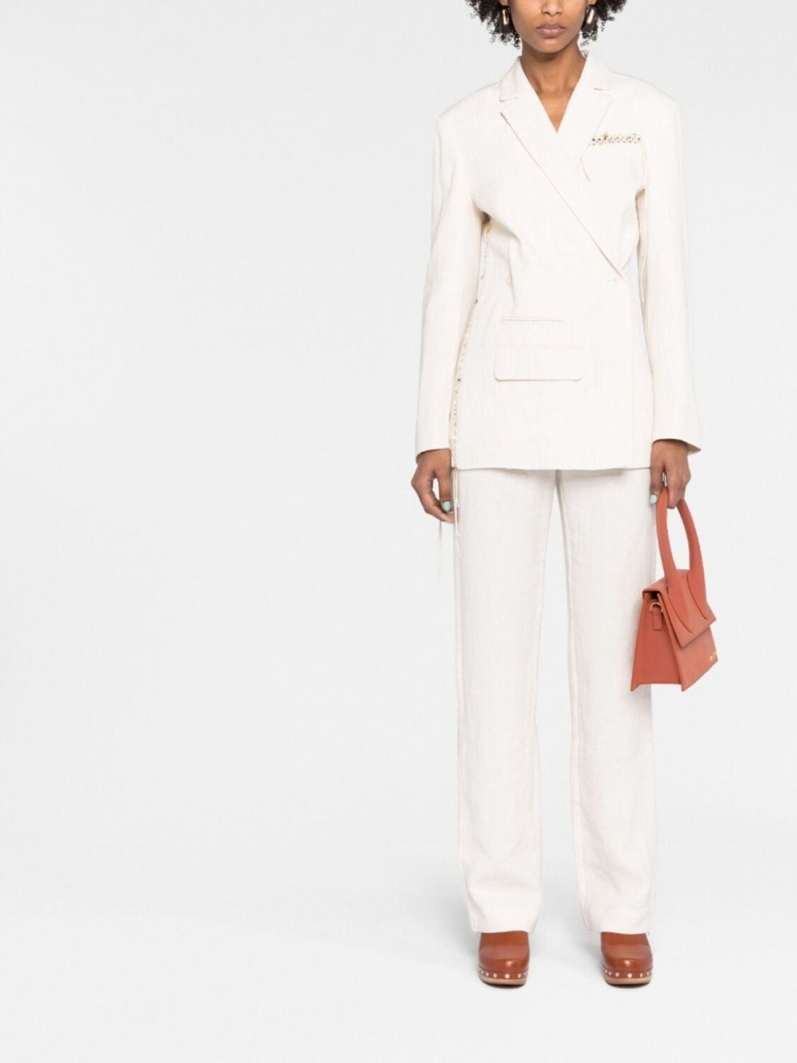 Jacquemus двубортный блейзер с вышивкой, нейтральный цвет