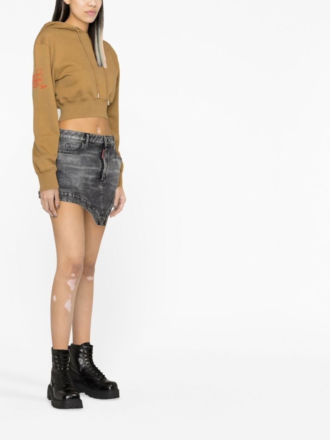 Коричневый, хлопок, затягивающийся на шнурок капюшон, принт с надписью сзади, бирка с логотипом, края в рубчик, длинные рукава и укороченная длина.