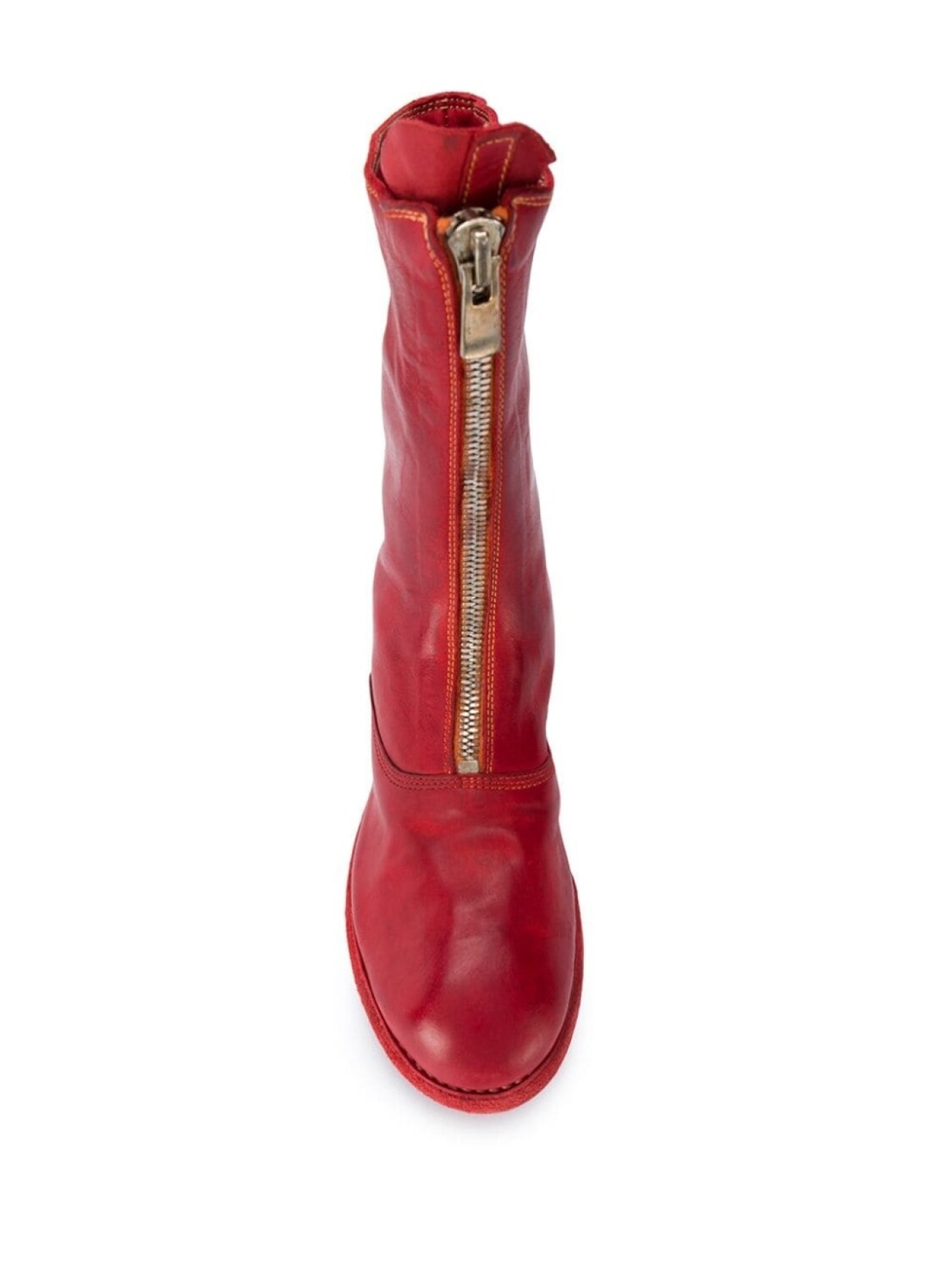 Закругленный носок, застежка на молнии спереди и плоская кожаная подошва. Цвет: красный.