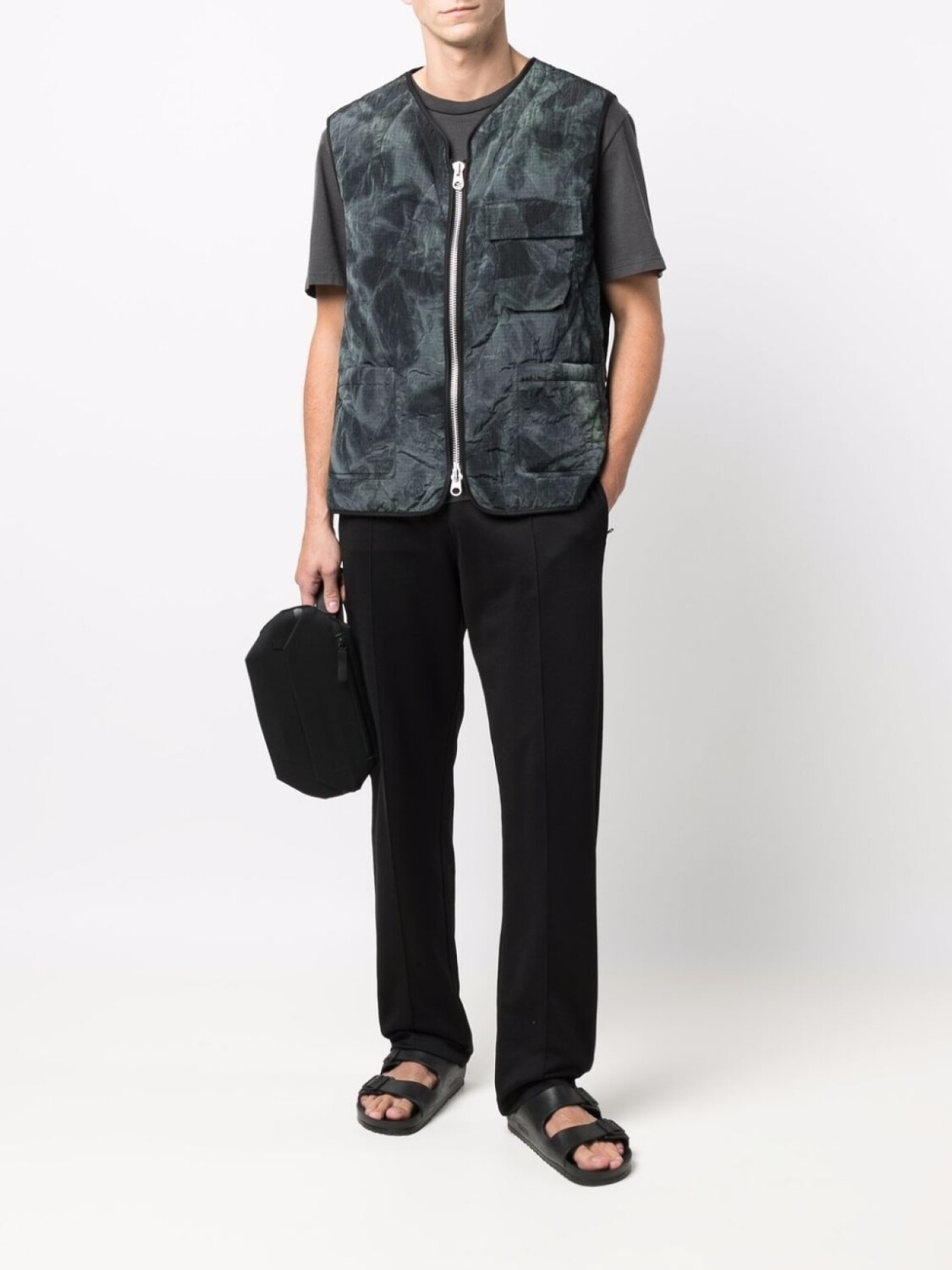 Принт тай-дай, V-образный вырез, застежка на молнии спереди, без рукавов, нагрудный карман с клапаном, два накладных кармана спереди и прямой подол. Цвет: серый.