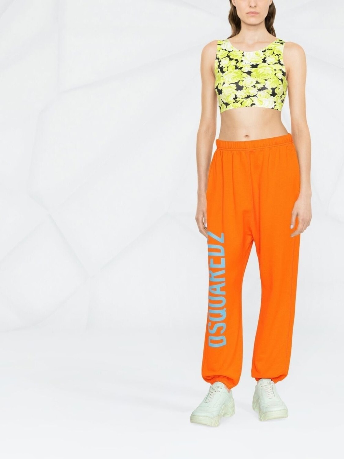 Черный, желтый, цветочный принт, принт с логотипом на груди, круглый вырез, эластичный материал, без рукавов и укороченная длина.