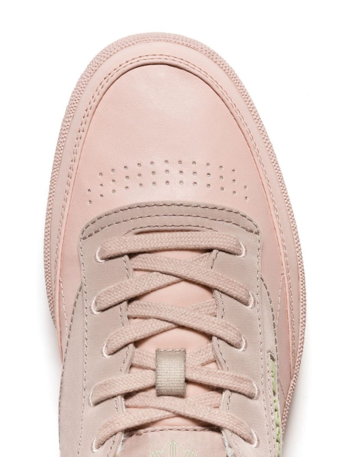 розовый, кожа, дизайн со вставками, логотип сбоку, нашивка с логотипом на язычке, логотип на заднике, перфорированный носок, закругленный носок, шнуровка спереди, логотип на подошве, плоская резиновая подошва