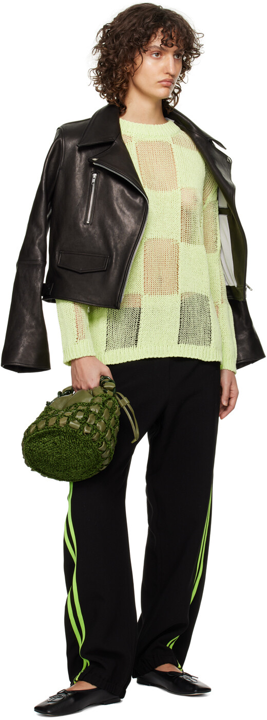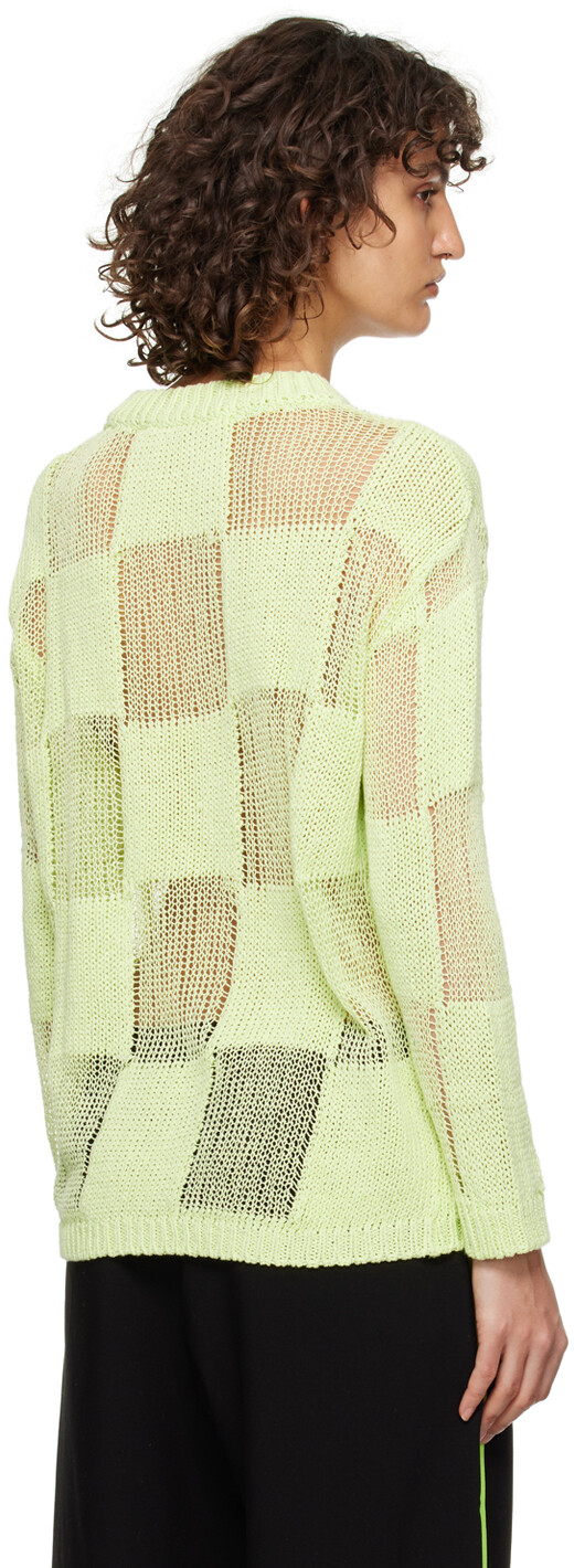 Полупрозрачный ажурный свитер из смесовой бумажной пряжи и хлопка. Узор в клетку.