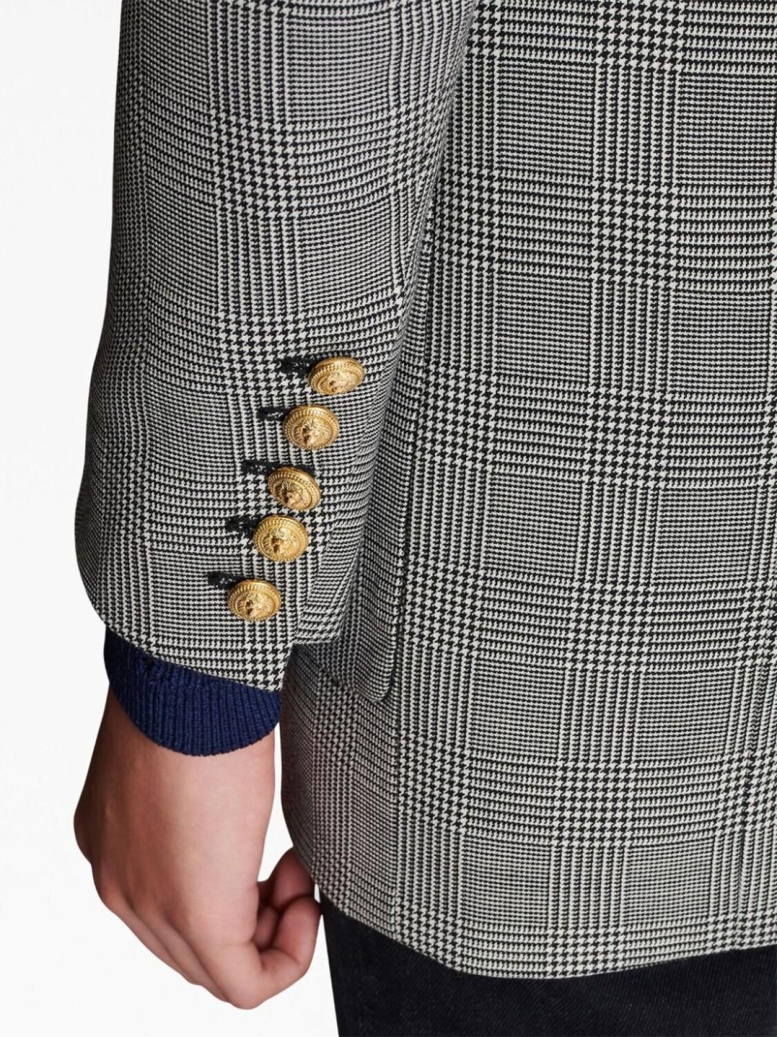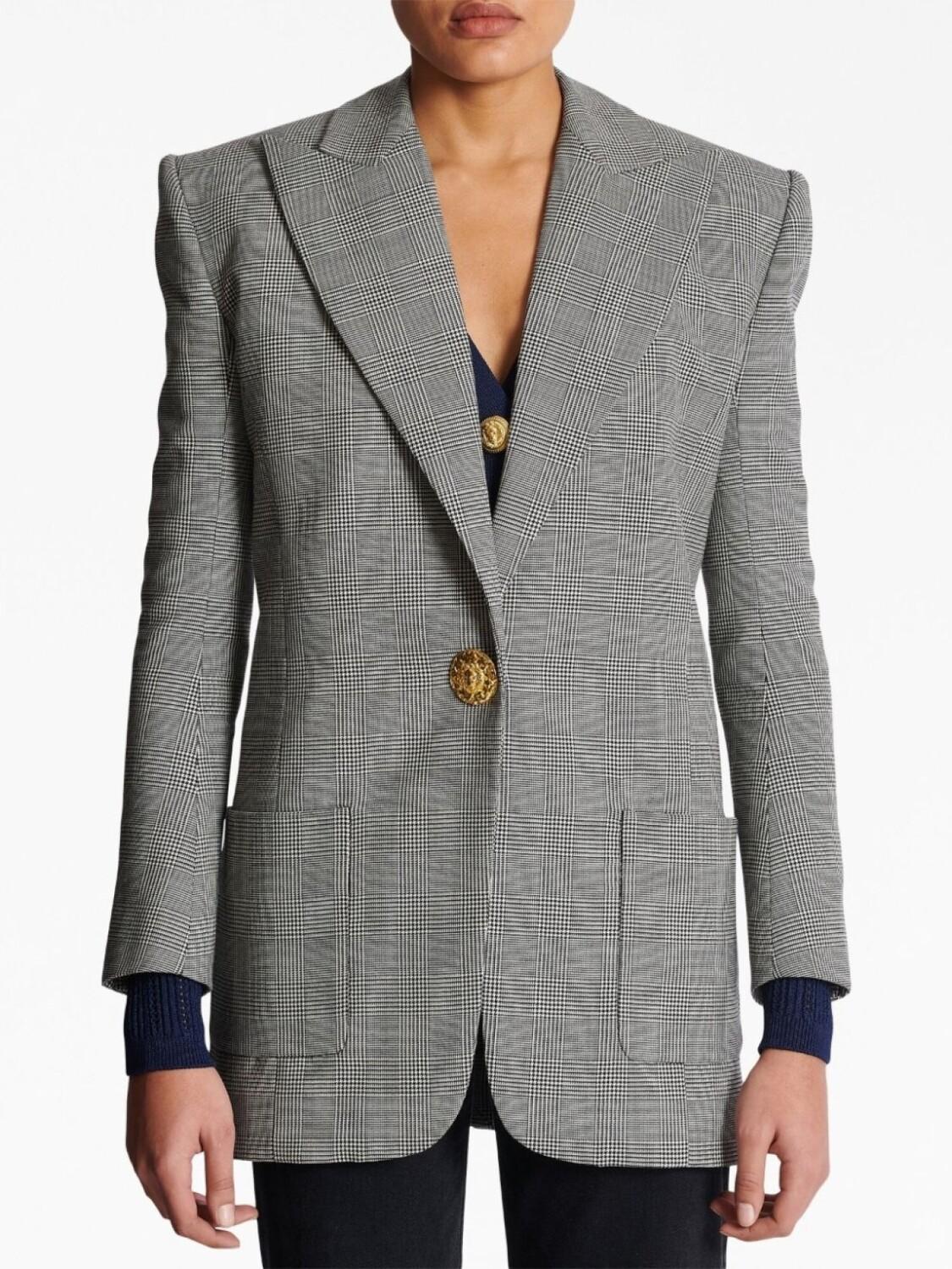 Подробнее о товаре: Черный, необработанная шерсть, принт в клетку Prince of Wales, заостренные лацканы, золотистые пуговицы с тиснением, два накладных кармана спереди, длинные рукава и прямой подол. Этот товар как минимум на 50% состоит из материалов, которые признаны более безопасными для окружающей среды, и/или произведены с использованием методов, которые помогают сократить потребление воды и химических веществ. Узнать больше о том, какие товары получают отметку «Ответственный выбор», можно из материала «Как мы оцениваем экологичность и этичность».