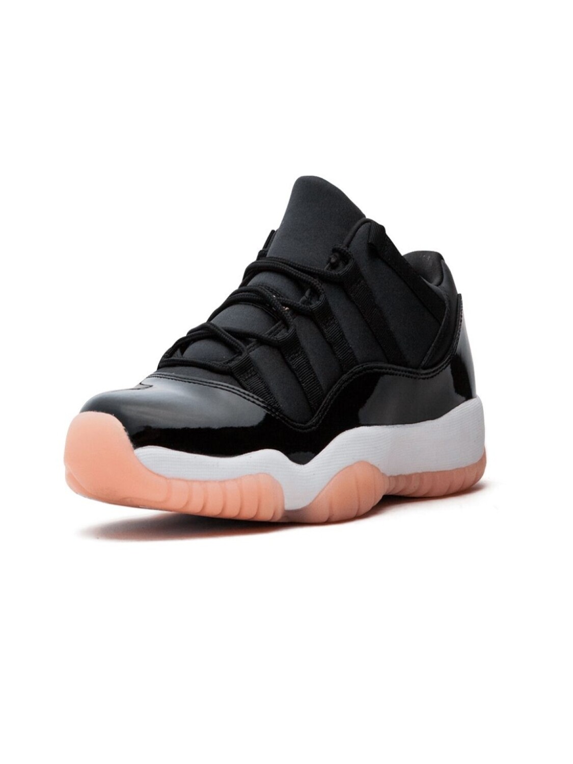Черные с оранжевым и белым кроссовки 'Air Jordan 11 Retro Low GG' из лакированной кожи от jordan. Миндалевидный носок, шнуровка спереди, фирменная стелька, уплотненная щиколотка, резиновая подошва, прозрачные вставки на подошве.