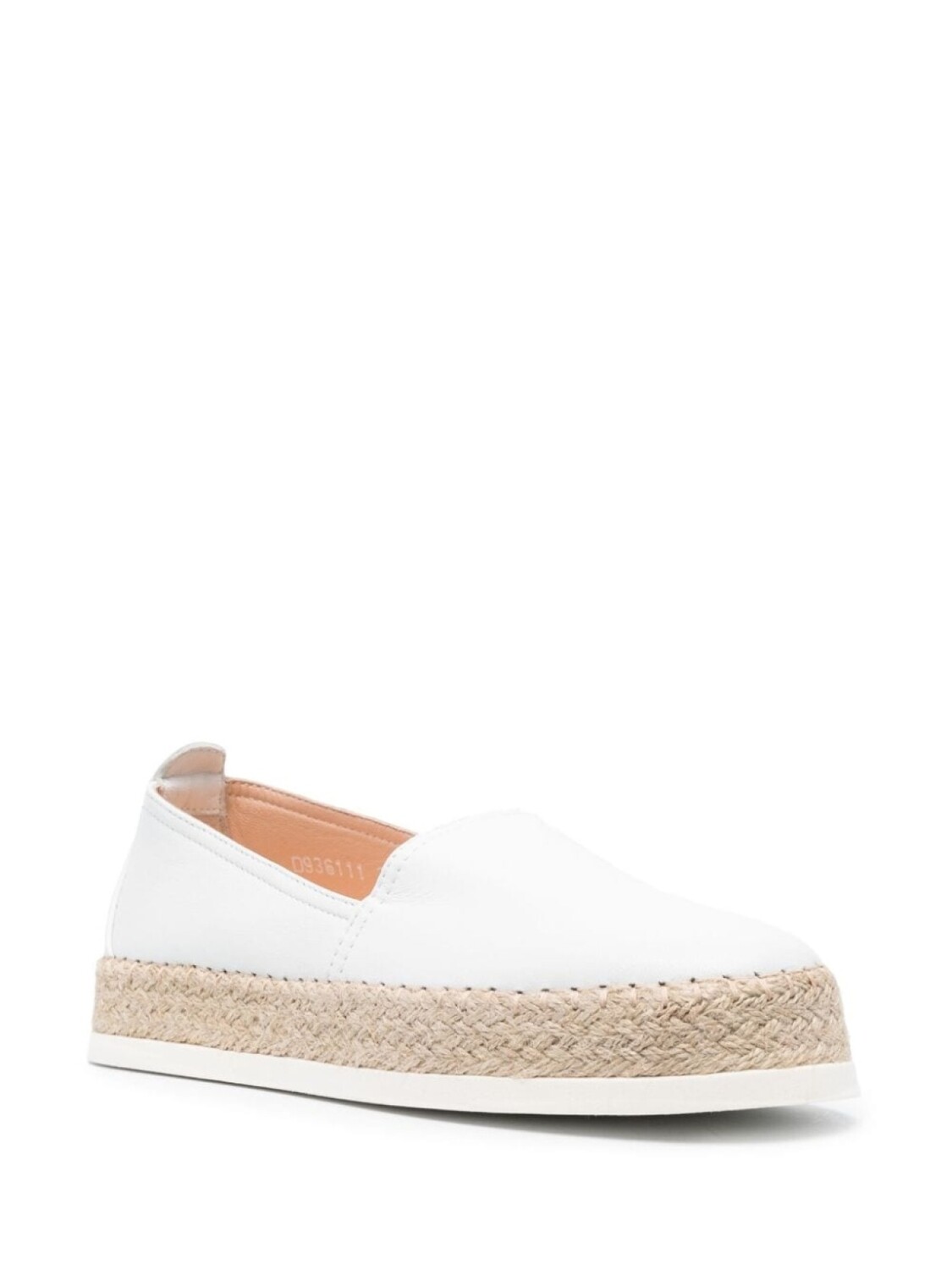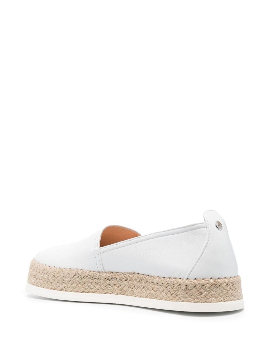 Молочно-белый, телячья кожа, веревочный декор, модель без застежки, стелька с логотипом, плоская резиновая подошва и закругленный носок.