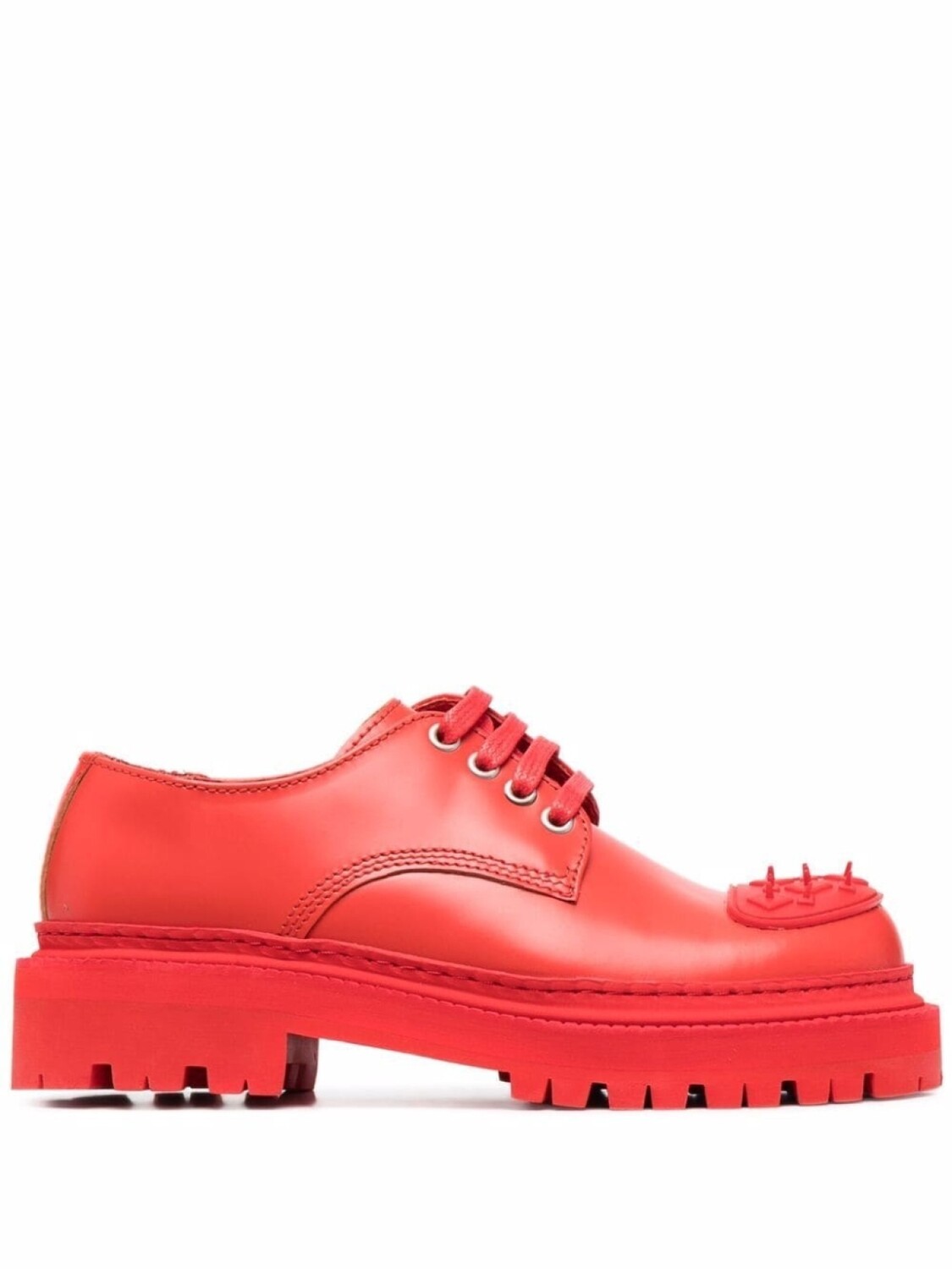 Подробнее о товаре: Аппликация, закругленный носок, шнуровка спереди, стелька с логотипом, низкий блочный каблук и рифленая резиновая подошва. Цвет: красный. Кожа в составе этого товара сделана на фабрике, сертифицированной организациями Leather Working Group (LWG) или ICEC. Это гарантирует, что производитель минимизировал негативное влияние материала на окружающую среду. Узнать больше о том, какие товары получают отметку «Ответственный выбор», можно из материала «Как мы оцениваем экологичность и этичность».