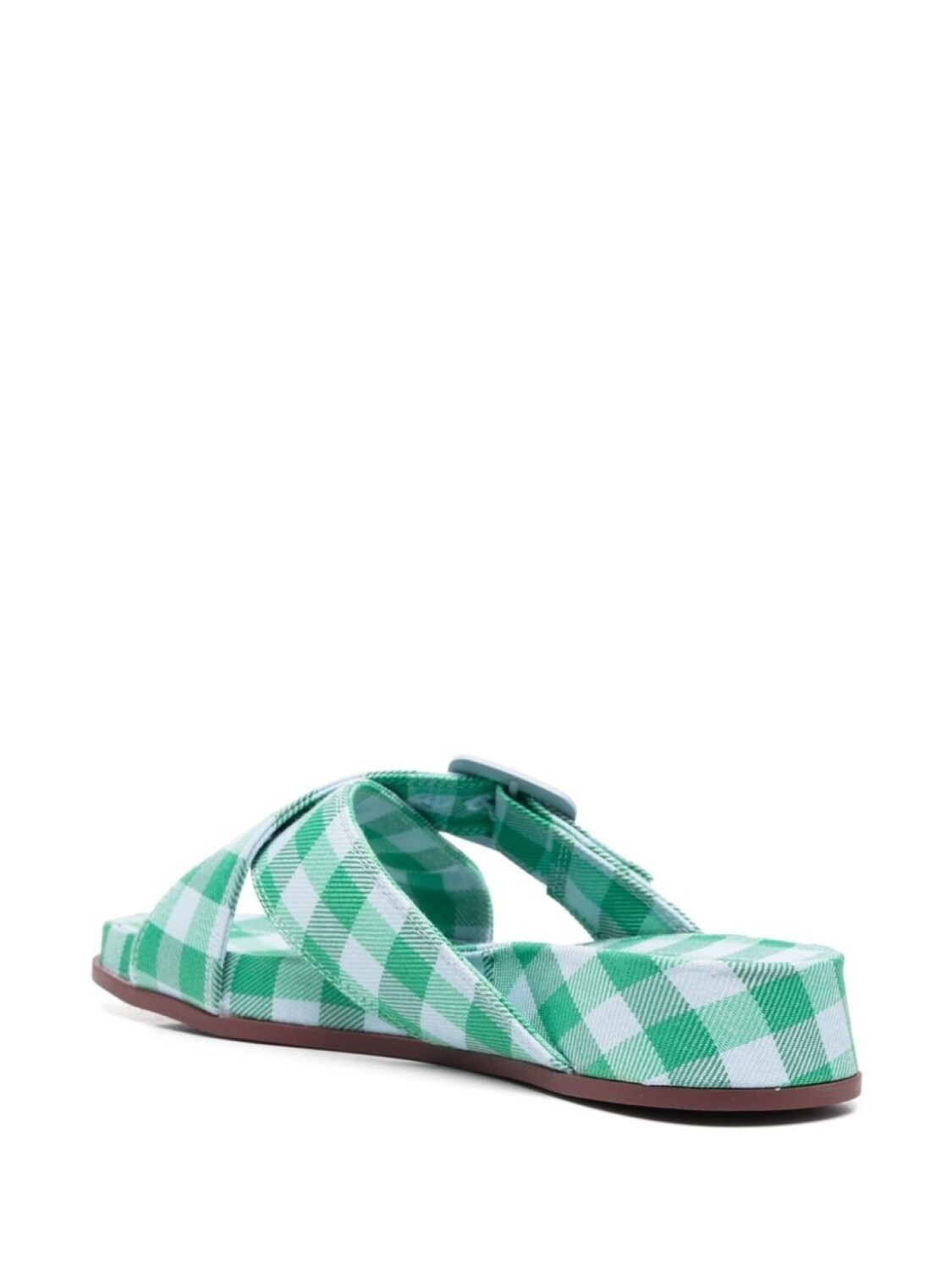 Ярко-зеленый, белый, переработанный хлопок, смесовый переработанный полиэстер, клетка гингем, открытый носок и плоская подошва. Этот товар как минимум на 50% состоит из переработанных или повторно использованных материалов. Мы рекомендуем стирать вещи из переработанных синтетических тканей в специальном мешке, чтобы микропластик не попадал в сточные воды. Узнать больше о том, какие товары получают отметку «Ответственный выбор», можно из материала «Как мы оцениваем экологичность и этичность».