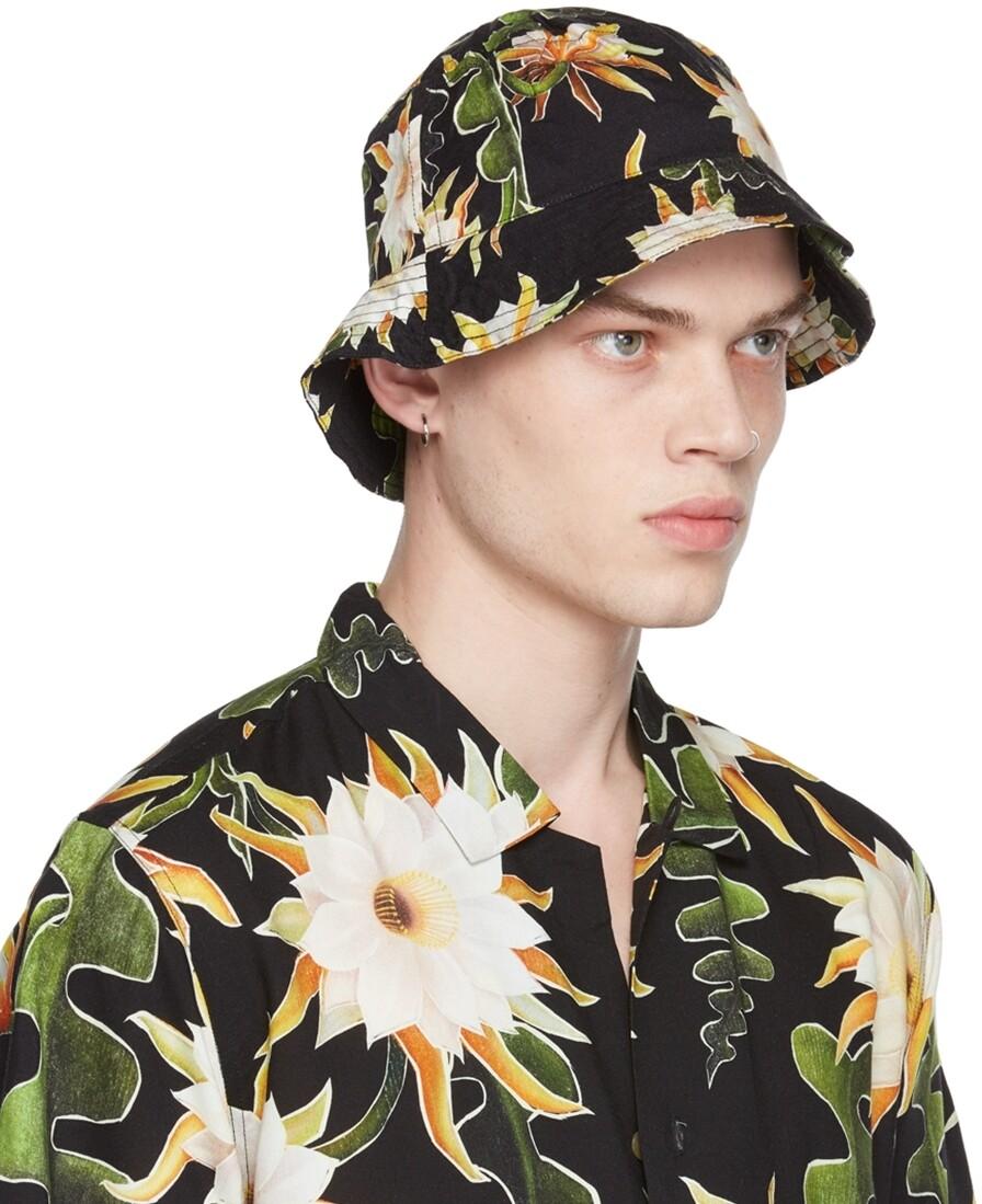 Черная шляпа-ведро из саржи из смеси тенсела и вискозы с многоцветным графическим принтом.