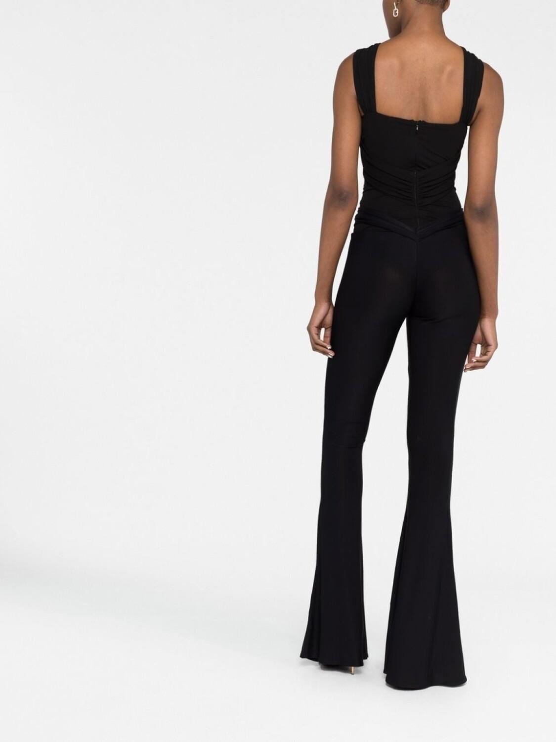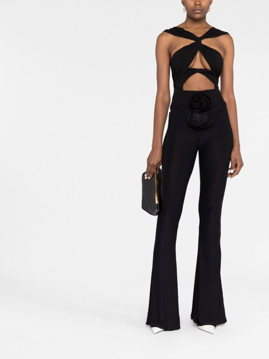 Черный, вырезные детали, перекрученная деталь, декоративная брошь, без рукавов и потайная застежка на молнии сзади.