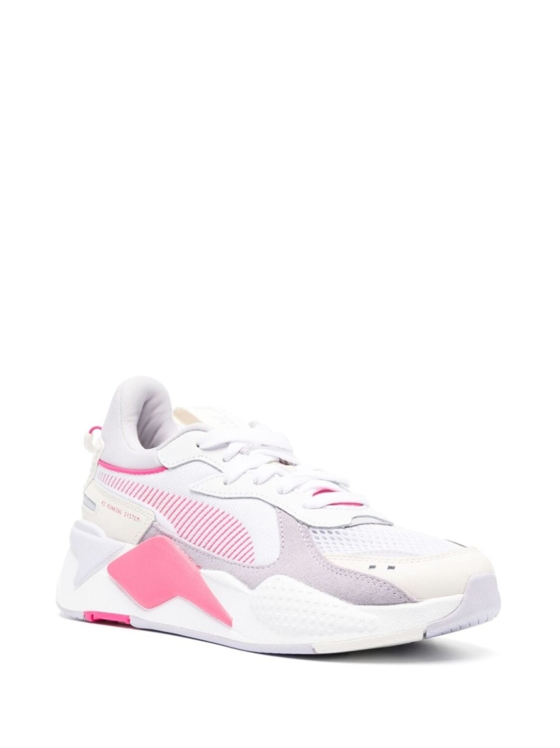 Белый, лавандовый, фуксия, нашивка с логотипом на язычке, контрастные вставки, сетчатые вставки, закругленный носок, шнуровка спереди, стелька с логотипом и массивная резиновая подошва.