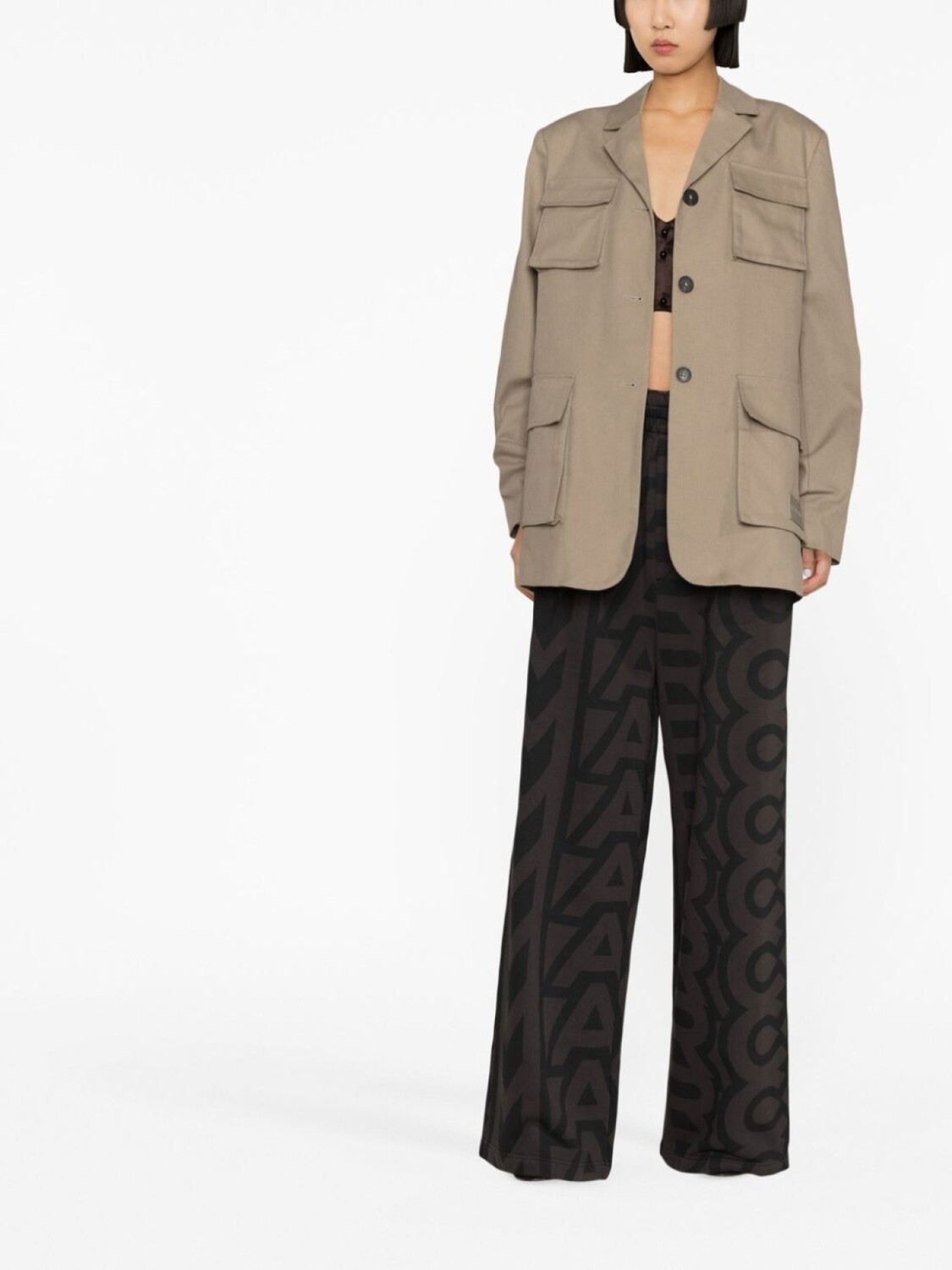 Бежевый, органический хлопок, отложный воротник, застежка на пуговицах спереди, четыре передних кармана с клапанами и длинные рукава. Ответственный выбор: