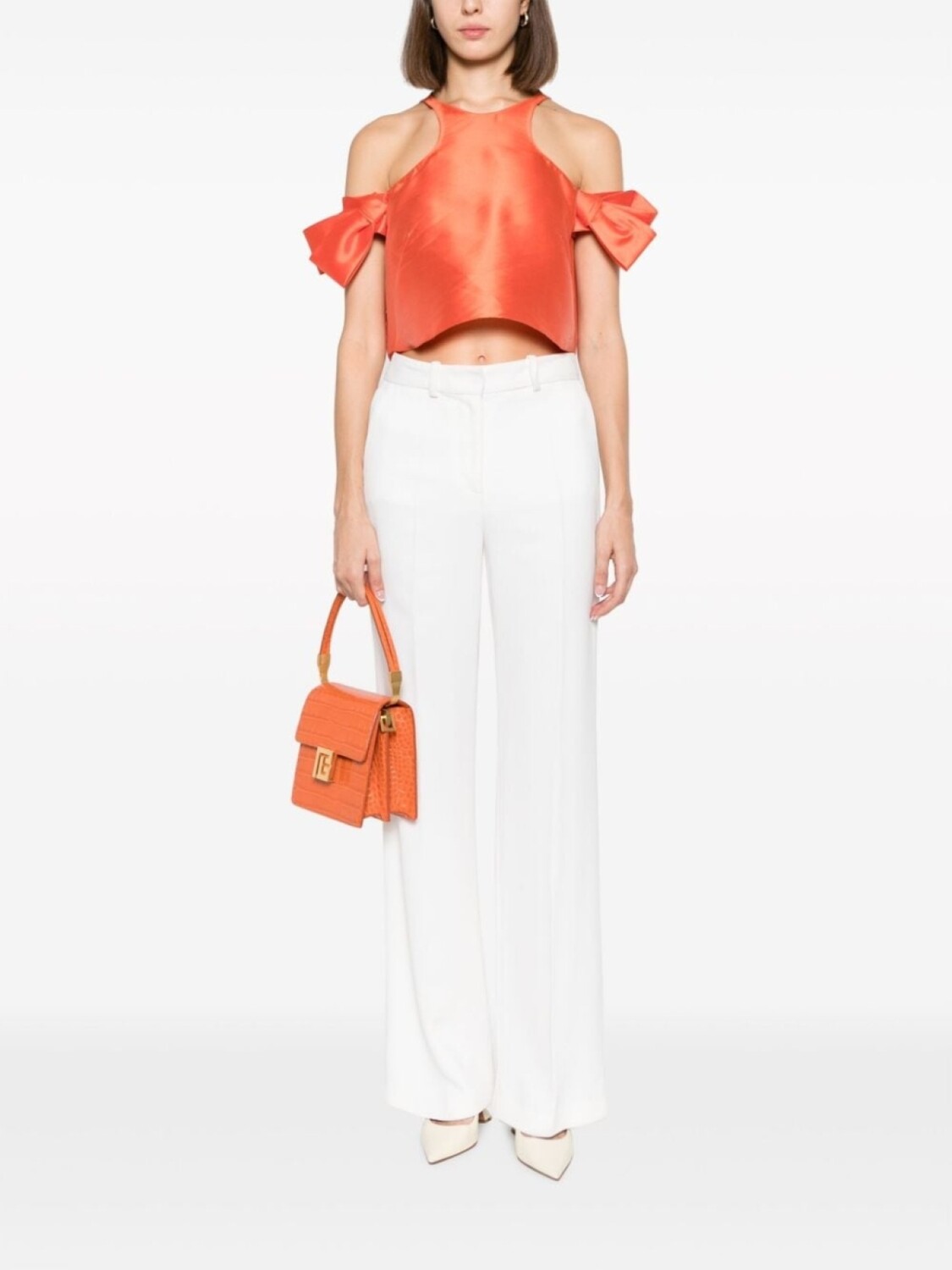 Gemy Maalouf укороченный топ с открытыми плечами, оранжевый