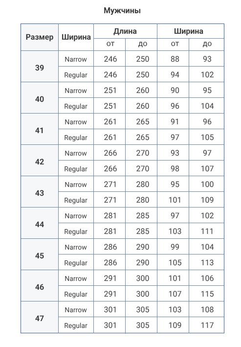 Ширина стопы: