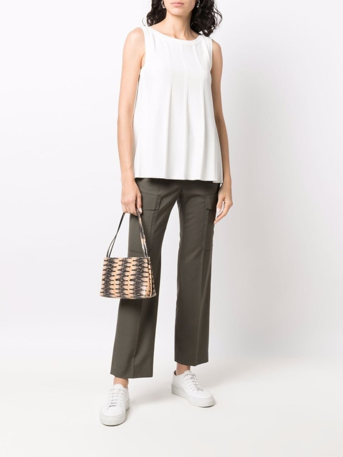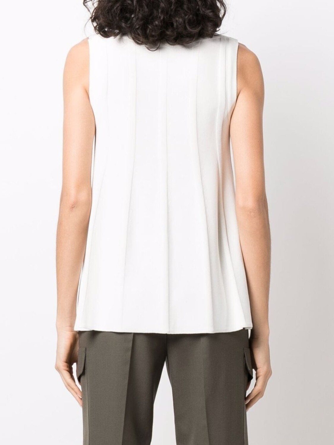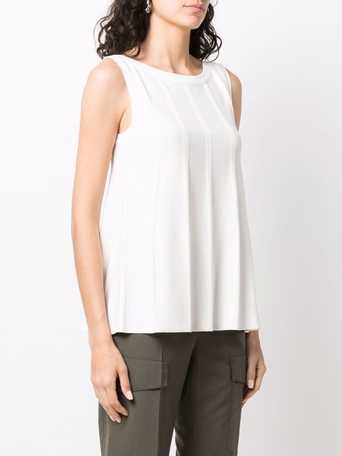Детали в рубчик, расклешенный крой, круглый вырез и без рукавов. Цвет: белый.