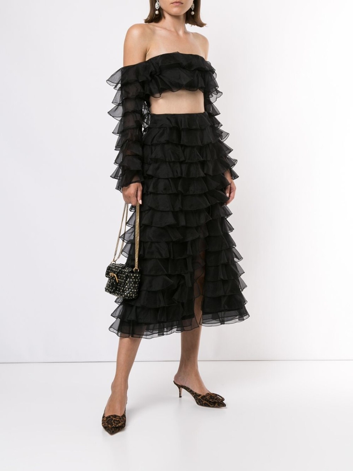 Топ Semantics от McGraw (МакГроу). Длинные рукава, модель с декоративными оборками и обрезанная длина. Цвет: черный.