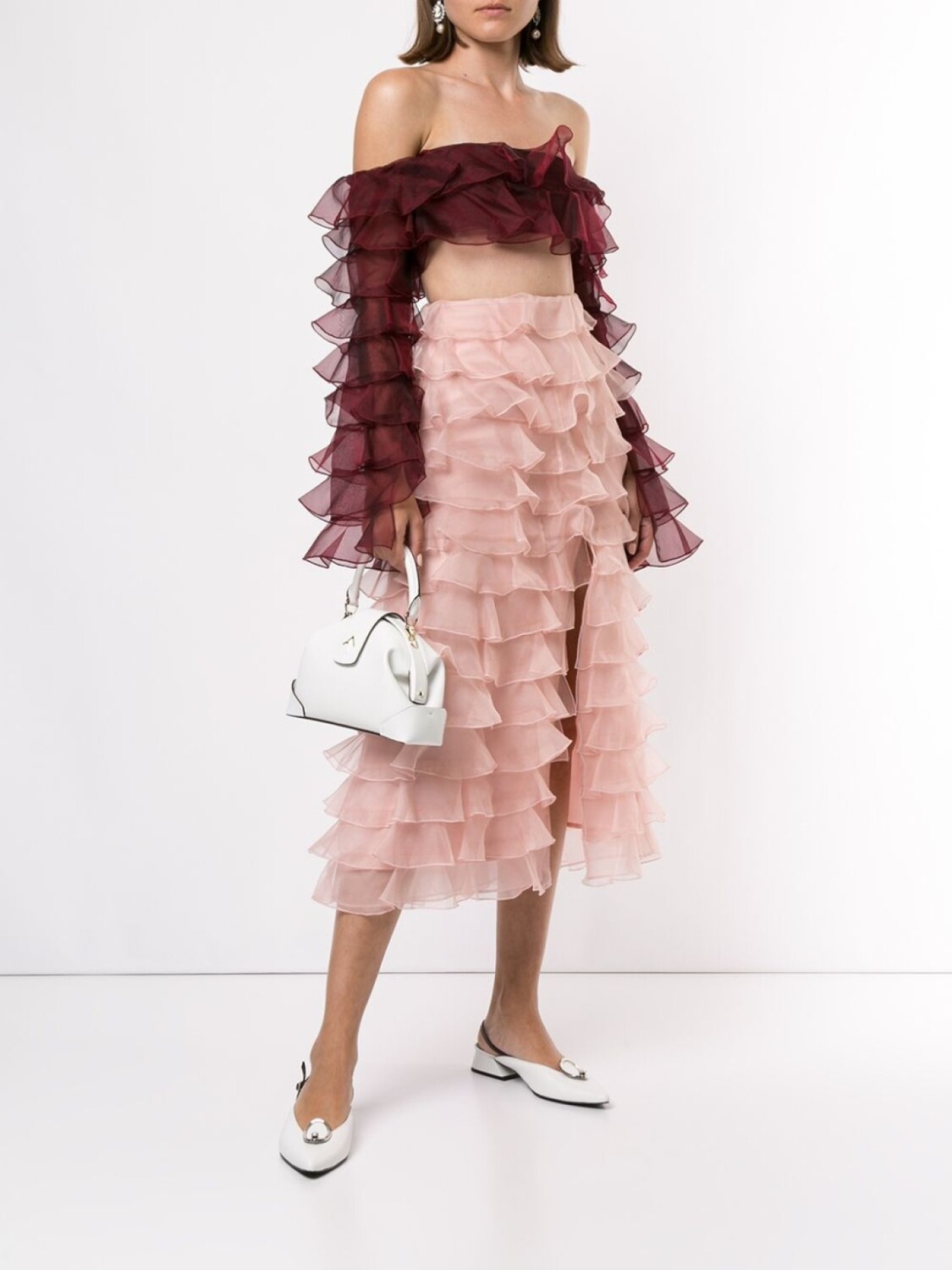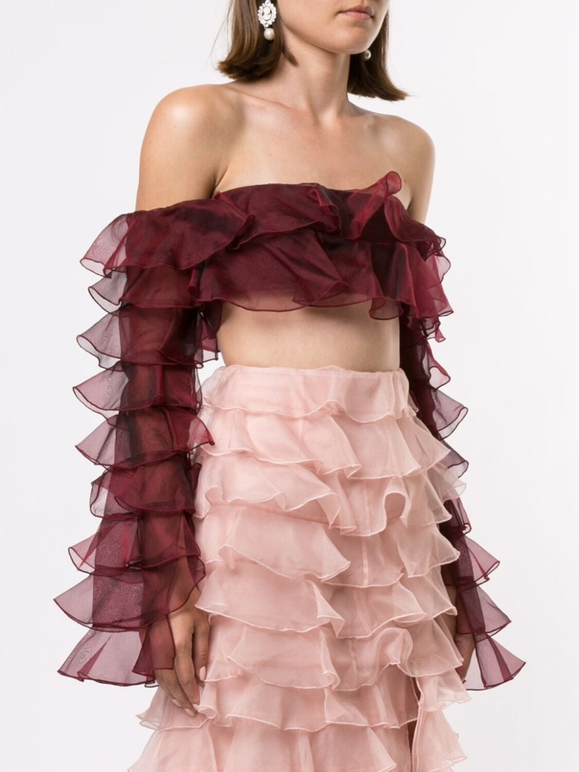 Топ Semantics от McGraw (МакГроу). Модель со спущенными плечами, длинные рукава, модель с декоративными оборками и укороченная длина.