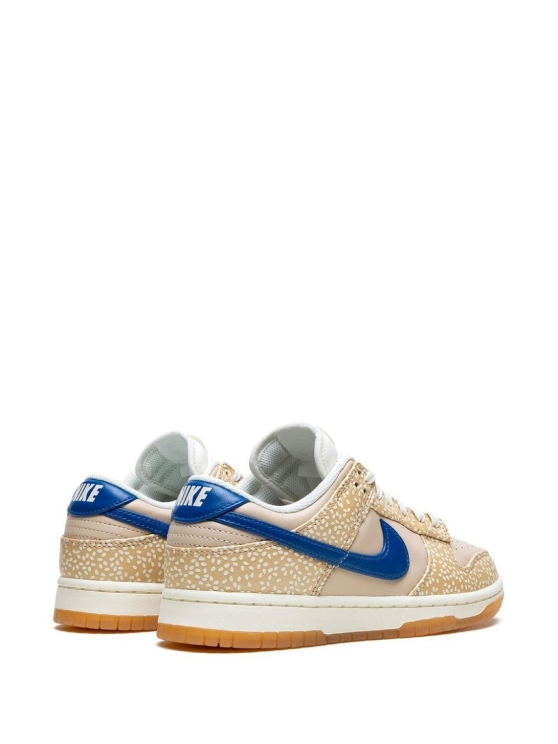 Бежевый, синий, кожа, логотип Nike Swoosh, закругленный носок, шнуровка спереди, стелька с логотипом и резиновая подошва. Эта модель представлена на маркетплейсе, где можно найти самые редкие модели кроссовок, о которых мечтают коллекционеры и любители streetwear по всему миру.