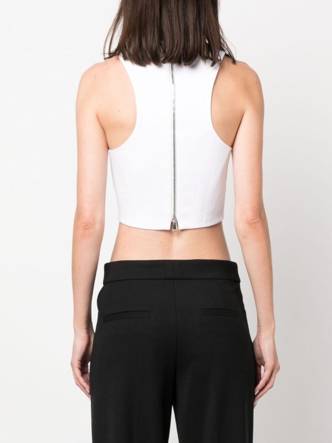 Белый, смесь хлопка и льна, вырез-петля халтер, застежка на молнии сзади, перекрестные бретели, без рукавов, вырез рейсер и укороченная длина.