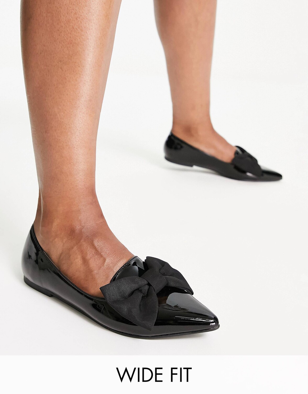 Черные балетки с острым носком и бантом ASOS DESIGN Wide Fit Lake