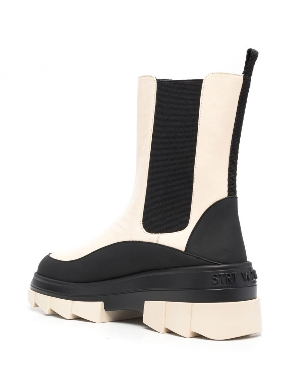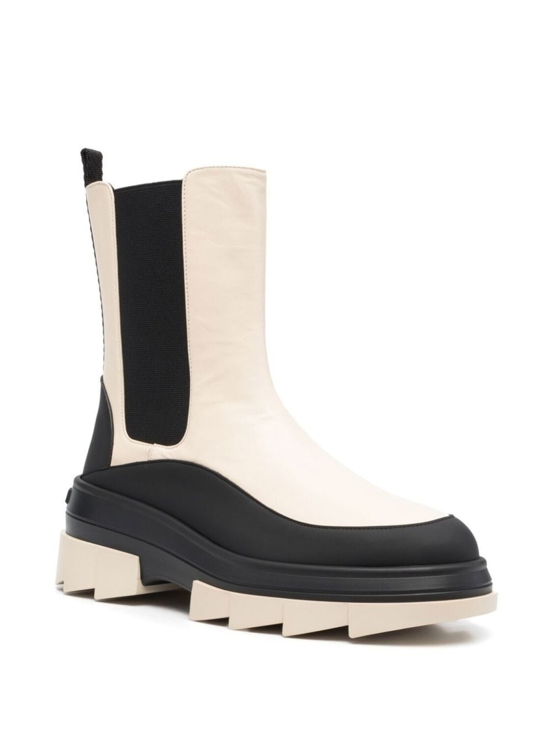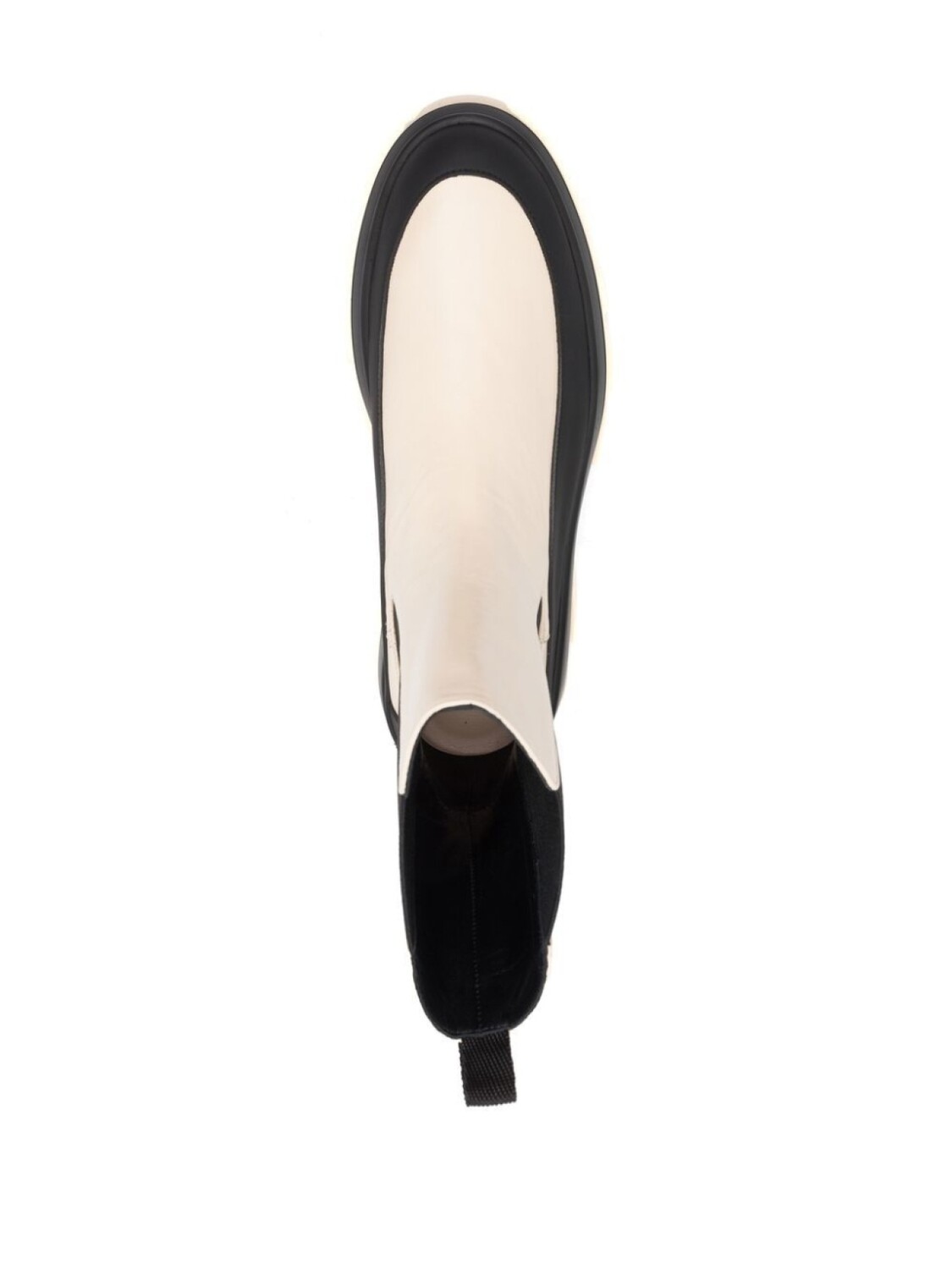 Ваниль, черный, кожа, стиль колор-блок, эластичные боковые вставки, закругленный носок, петля для подтягивания сзади и модель без застежки.