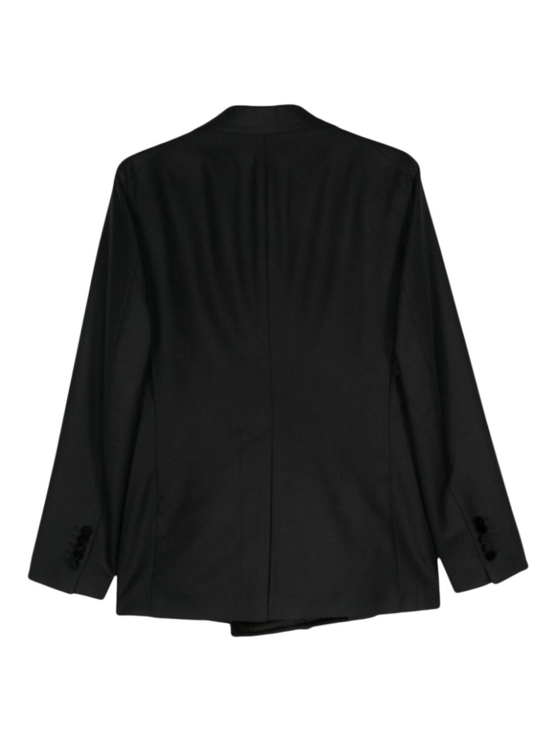 Подробнее о товаре: • черный • смесовый хлопок • ткань с твиловым переплетением • бархатная отделка • защипы • обтянутые тканью пуговицы • декоративная брошь • широкие заостренные лацканы • подплечники • длинные рукава с имитацией пуговиц на манжетах • шлица по центру сзади • прорезной карман на груди • два прорезных кармана спереди • четыре внутренних прорезных кармана • двубортная застежка на пуговицы • прямой подол • частичная подкладка