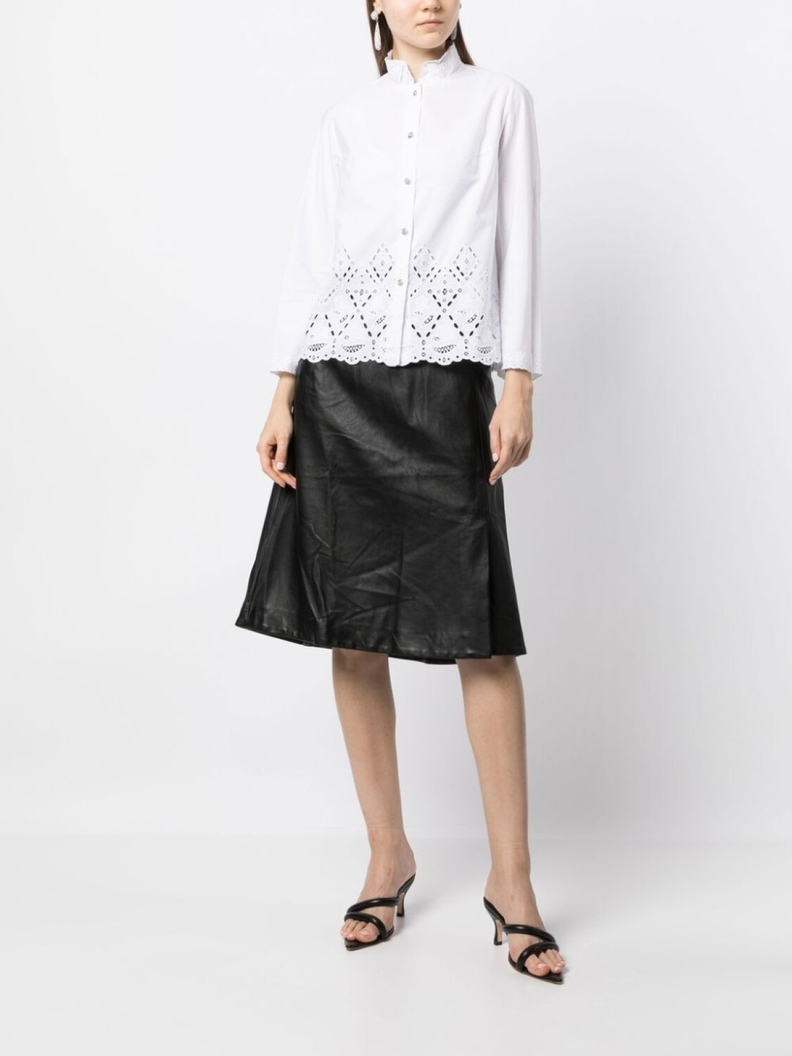 Белый, смесовый хлопок, многослойный дизайн, кружевной воротник, воротник-труба, потайная застежка спереди, длинные рукава и прямой подол.