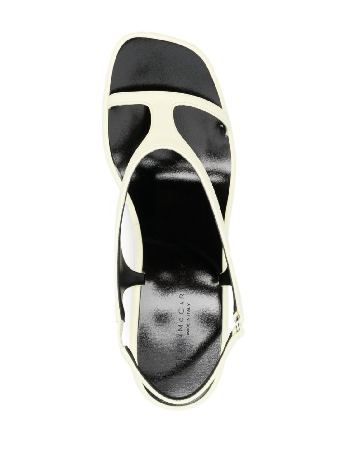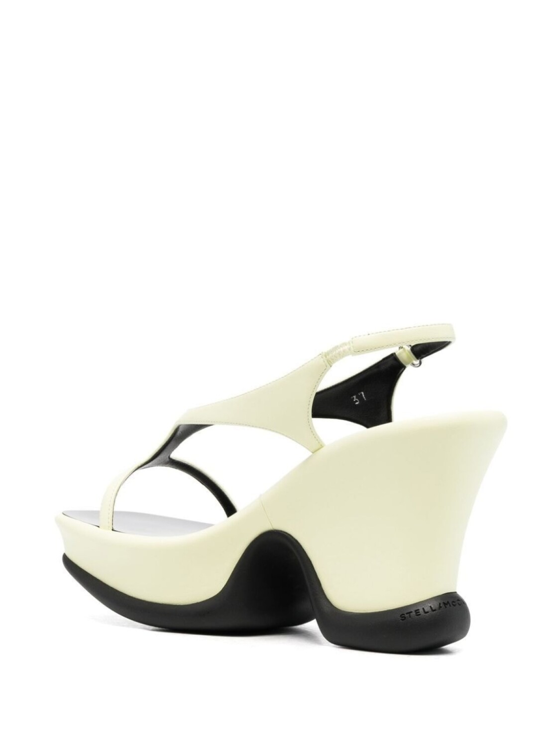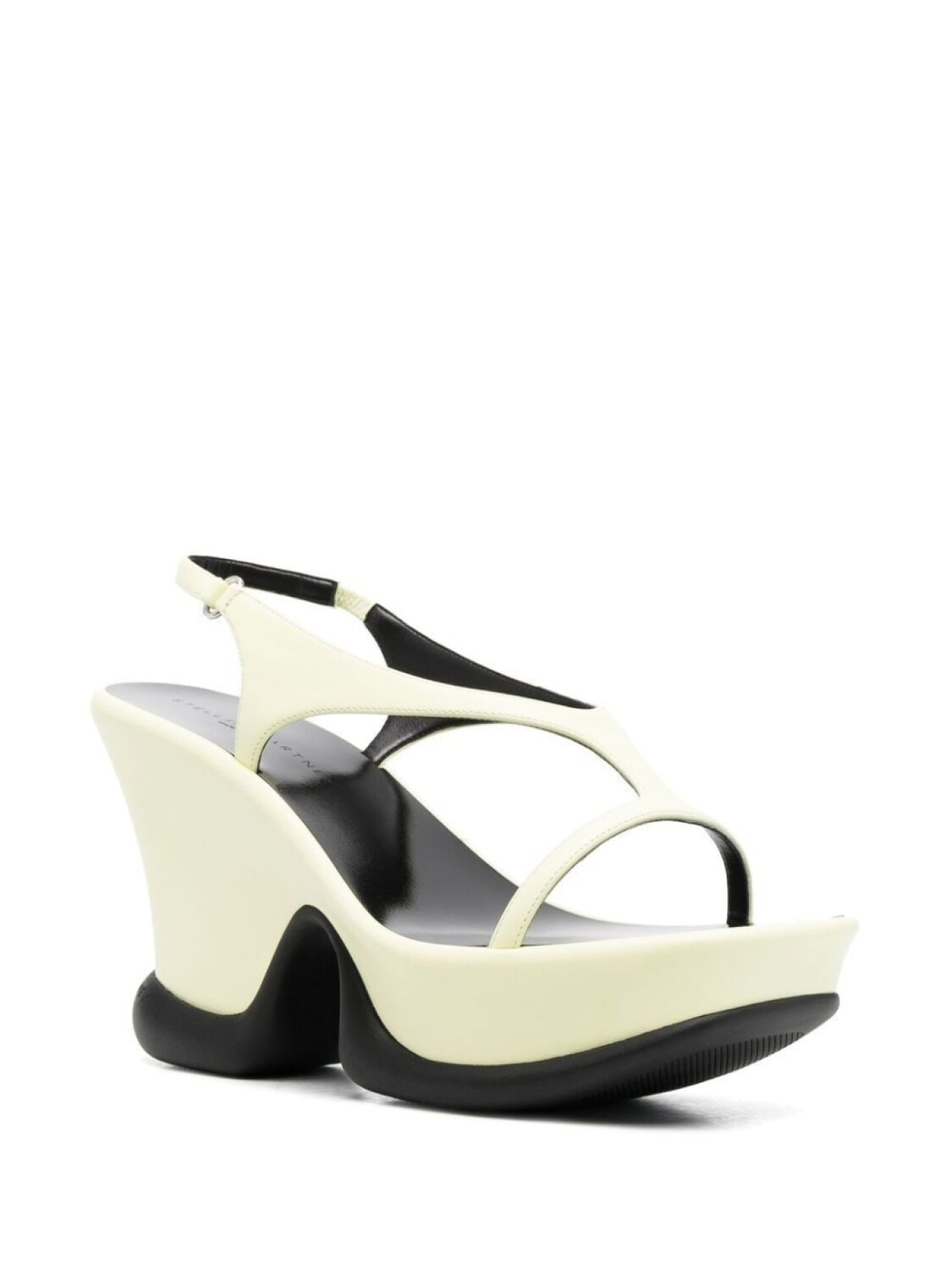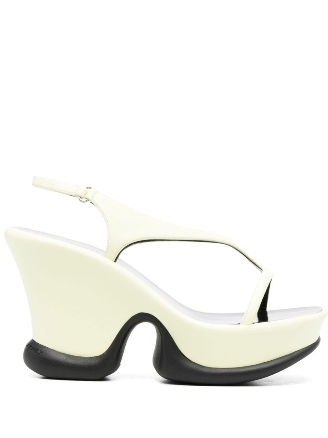 Пастельно-желтый, черный, танкетка на платформе и ремешок на пятке с пряжкой. Conscious: Мы объединились с агентством Good On You, которое оценивает бренды по степени их влияния на животных, людей и планету в целом.