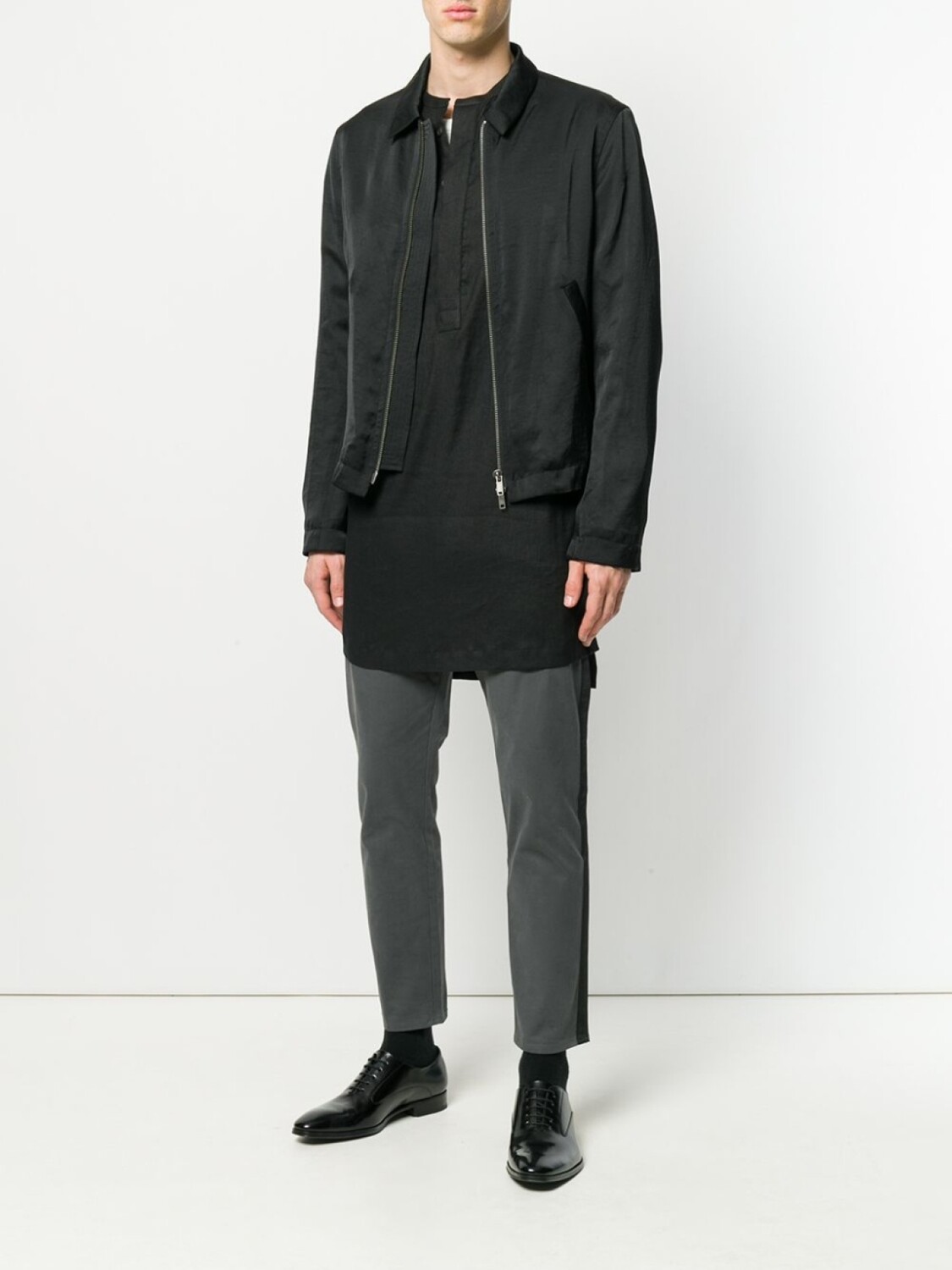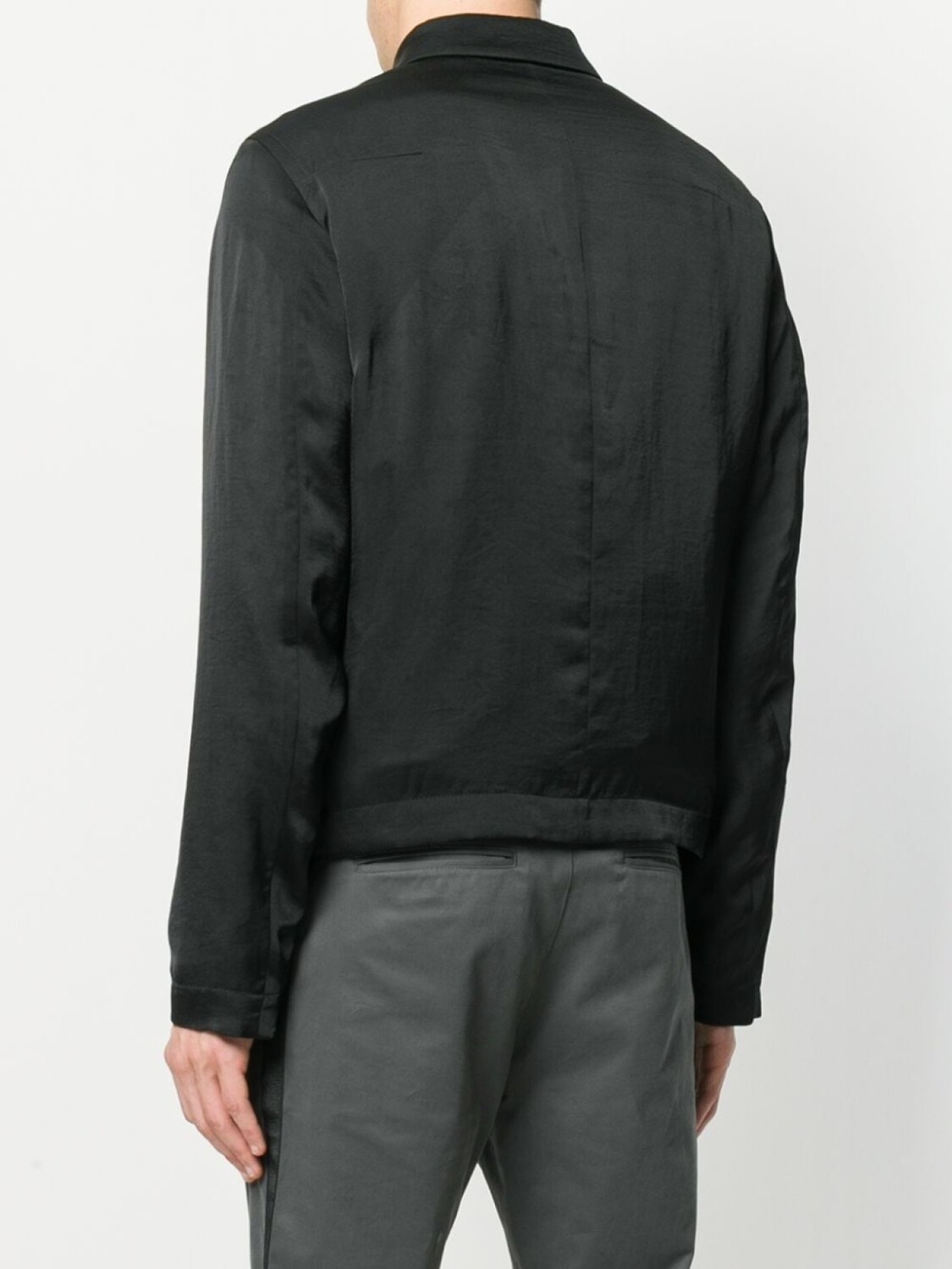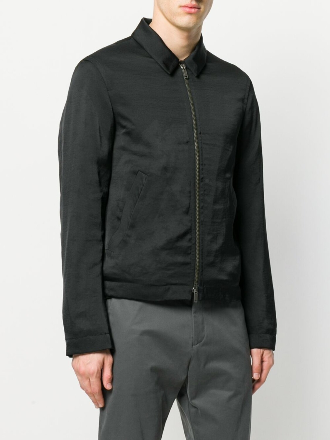 Черная легкая куртка на молнии от Haider Ackermann. Классический воротник, длинные рукава, застежка на молнии спереди, передние карманы.