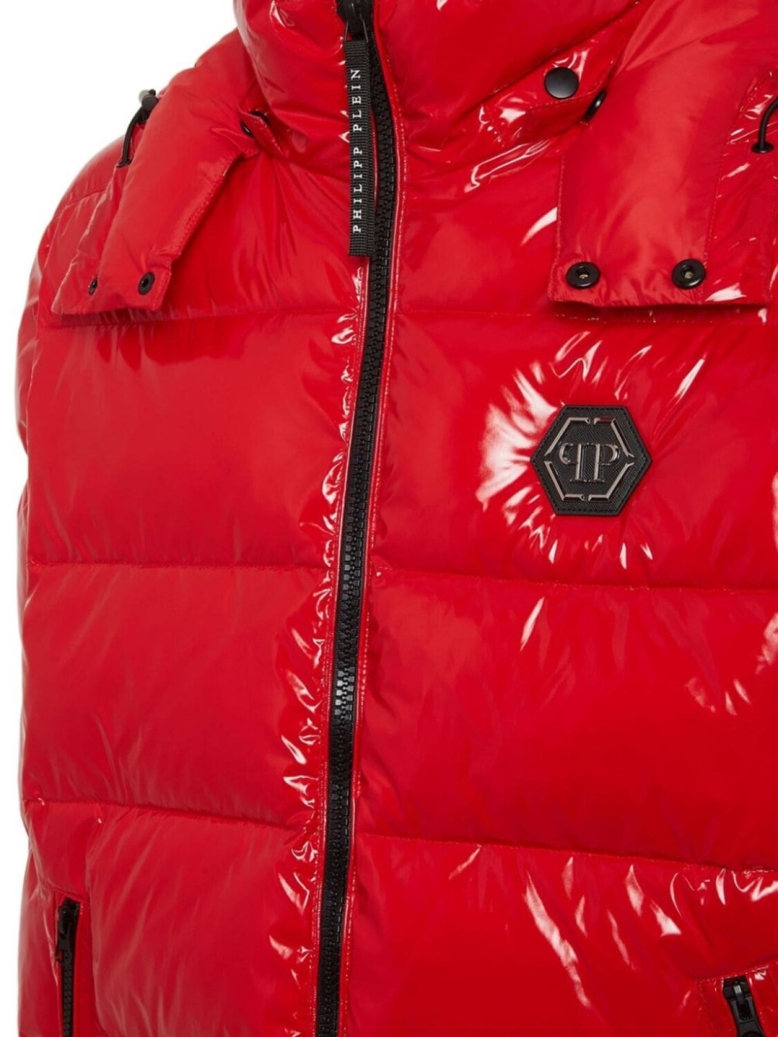 Philipp Plein пуховик с логотипом Hexagon, красный
