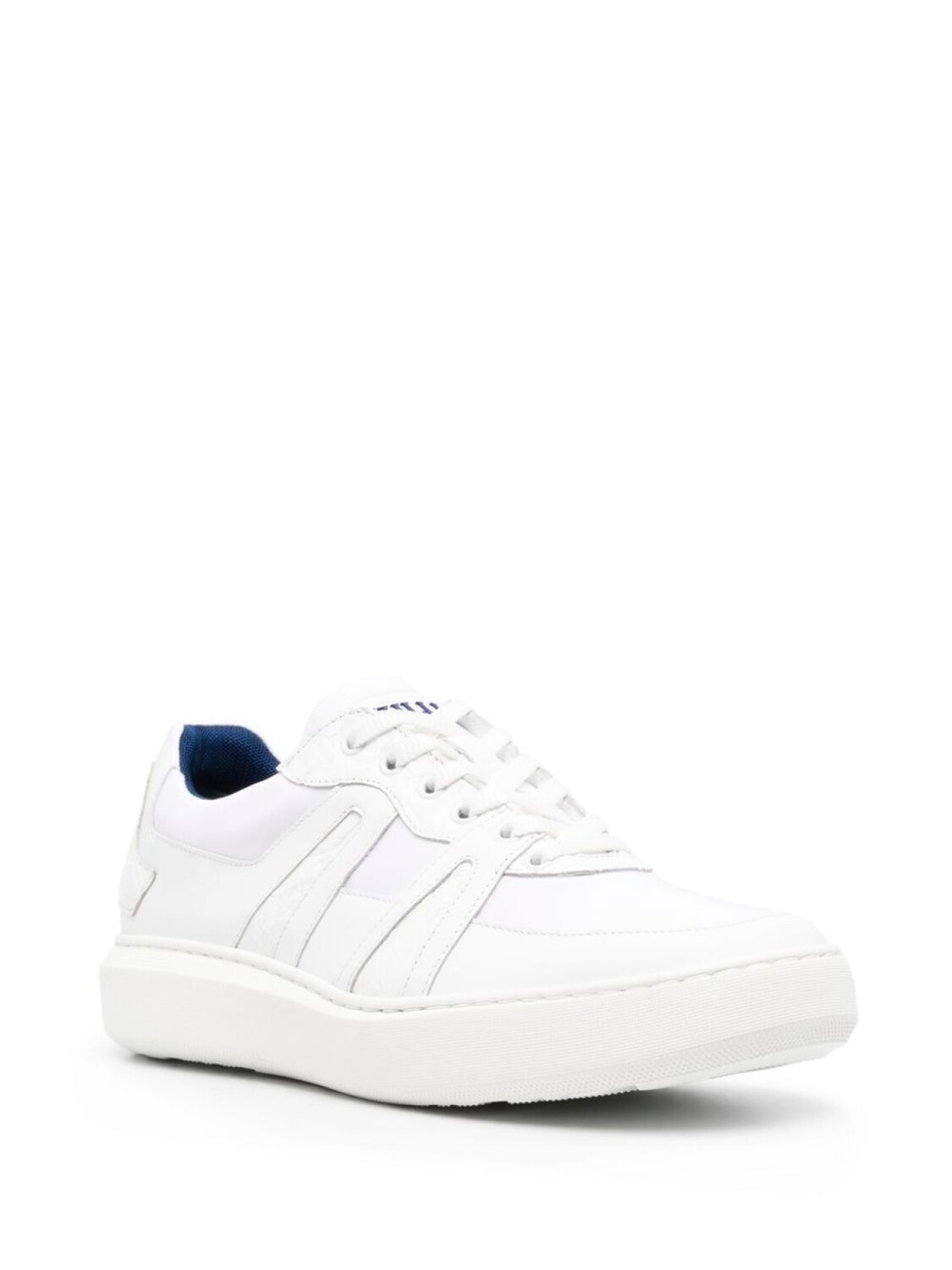 Белый, кожа, вставки, закругленный носок, шнуровка спереди, нашивка с логотипом на язычке, кожаная стелька с логотипом и плоская резиновая подошва.
