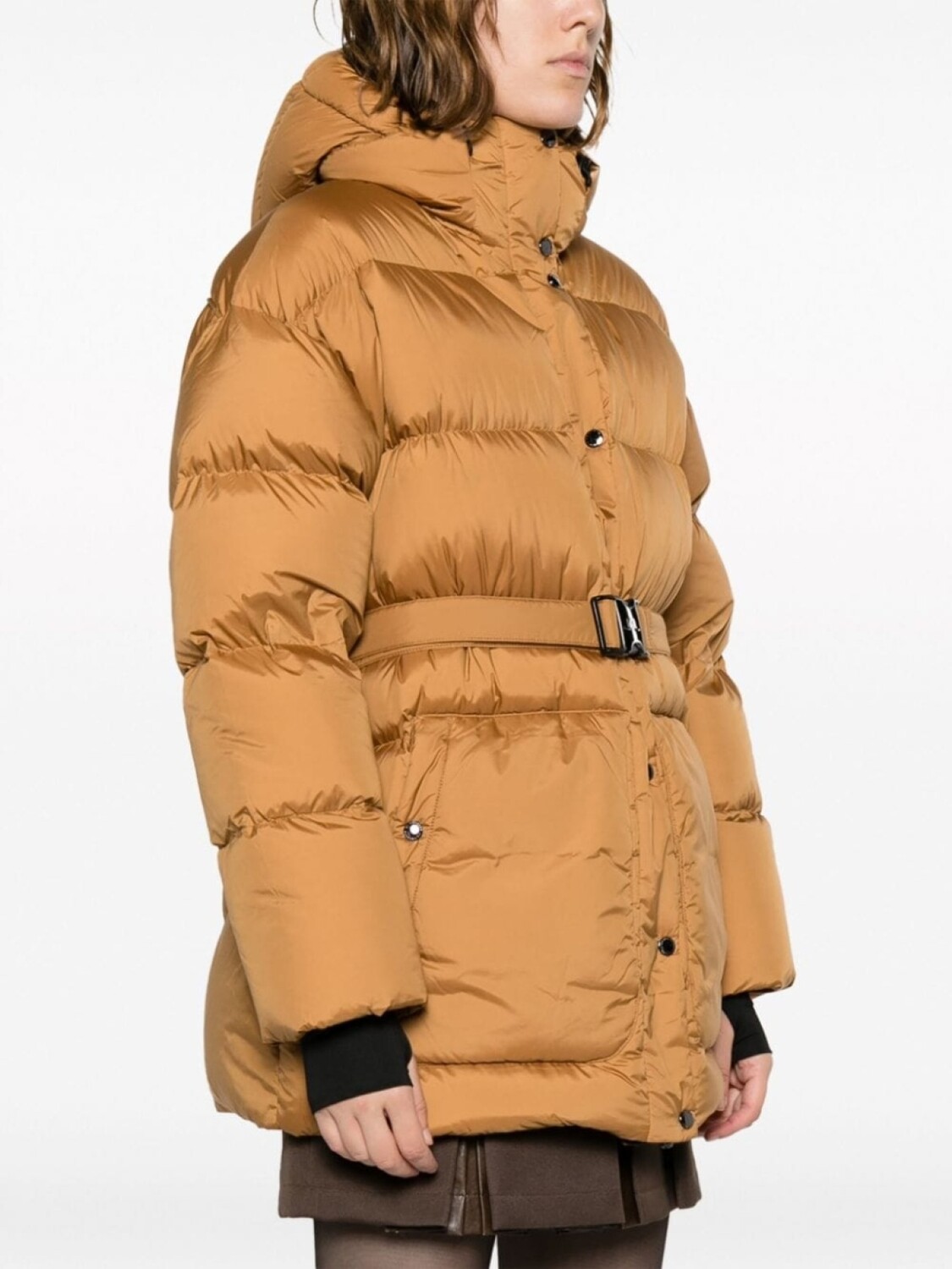Подробнее о товаре: Карамельный, переработанный полиэстер, утиный пух, дутый материал, ремень на талии, классический капюшон, застежка на кнопках спереди, потайная молния спереди, застежка на пряжке, длинные рукава, два вшитых кармана по бокам и прямой подол. Этот товар как минимум на 50% состоит из переработанных или повторно использованных материалов. Узнать больше о том, какие товары получают отметку «Ответственный выбор», можно из материала «Как мы оцениваем экологичность и этичность».