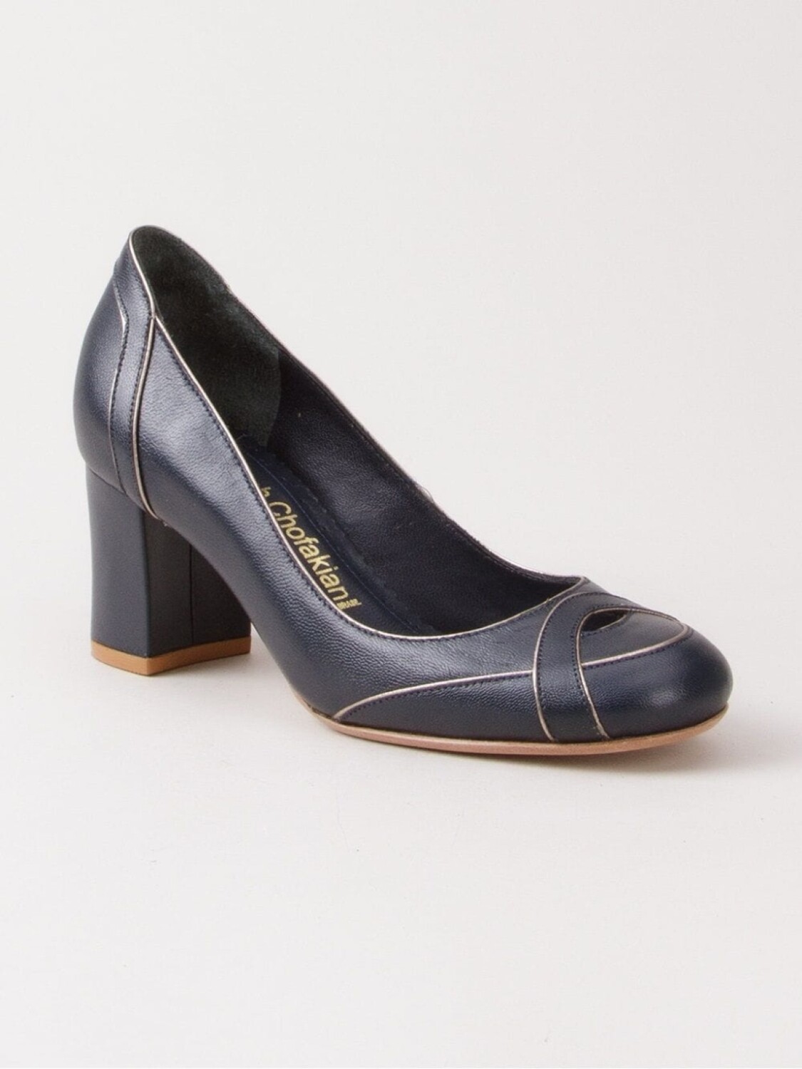 Leather pumps от Sarah Chofakian. Закругленный носок, вырезные детали и массивный высокий каблук.