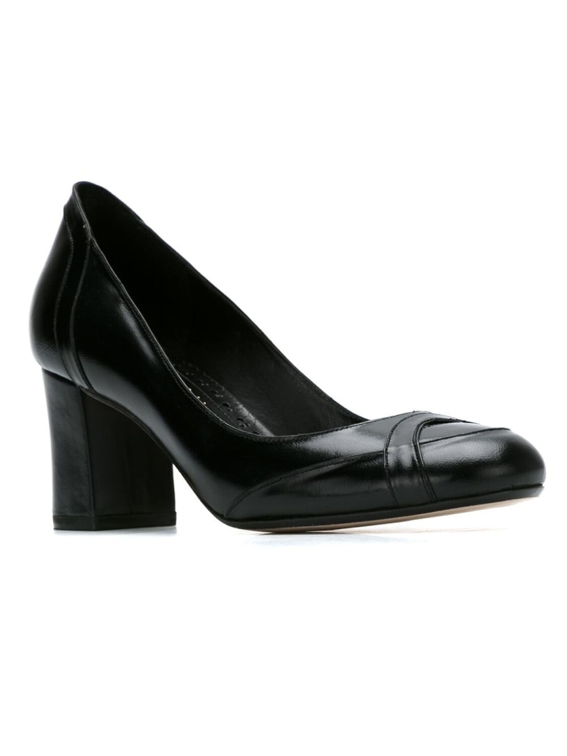 Leather pumps от Sarah Chofakian. Закругленный носок, массивный каблук средней высоты и отрезная деталь. Цвет: черный.
